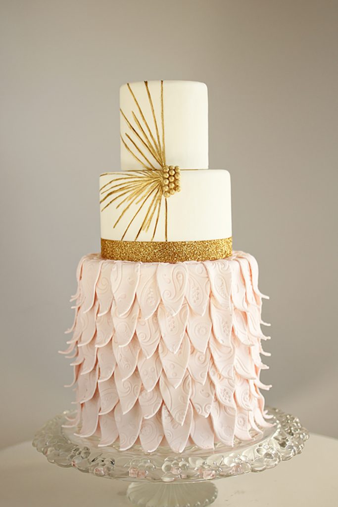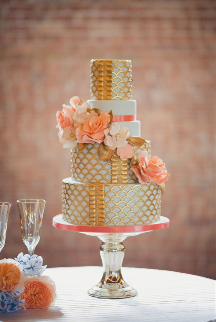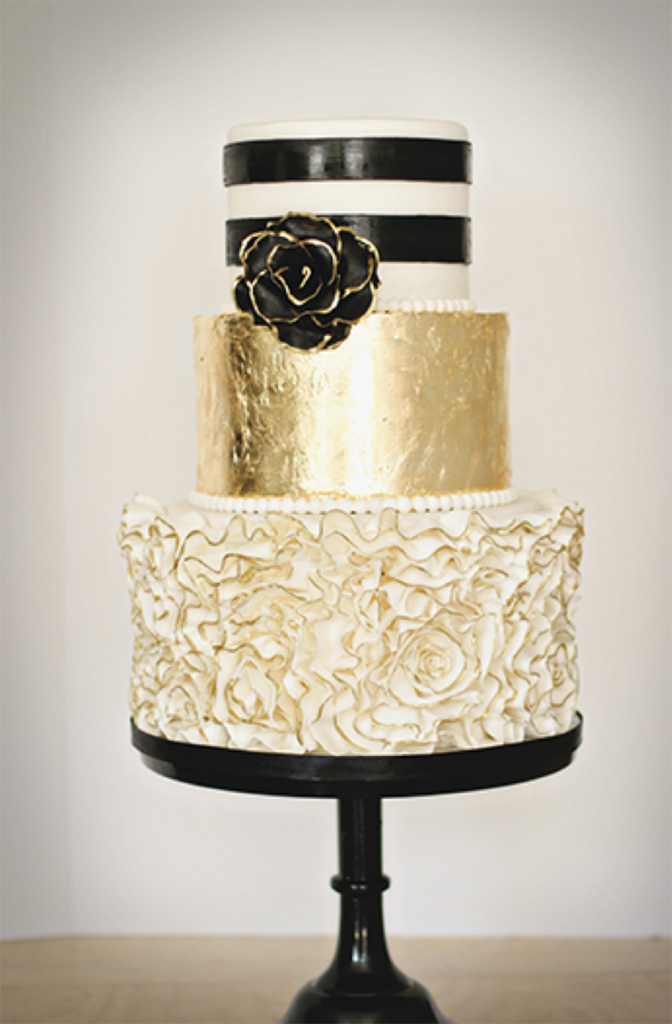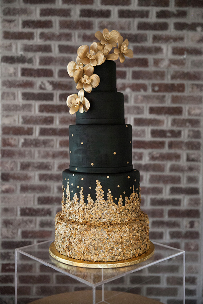 Showcase glamour and sophistication on your wedding day with a shimmering gold wedding cake! Keep it simple with a light golden pattern, or go full out with a completely gold painted cake. Either way, your cake is sure to dazzle guests! Here are just a few of our favorite gold wedding cakes from Oklahoma cake artists!gold wedding cakes