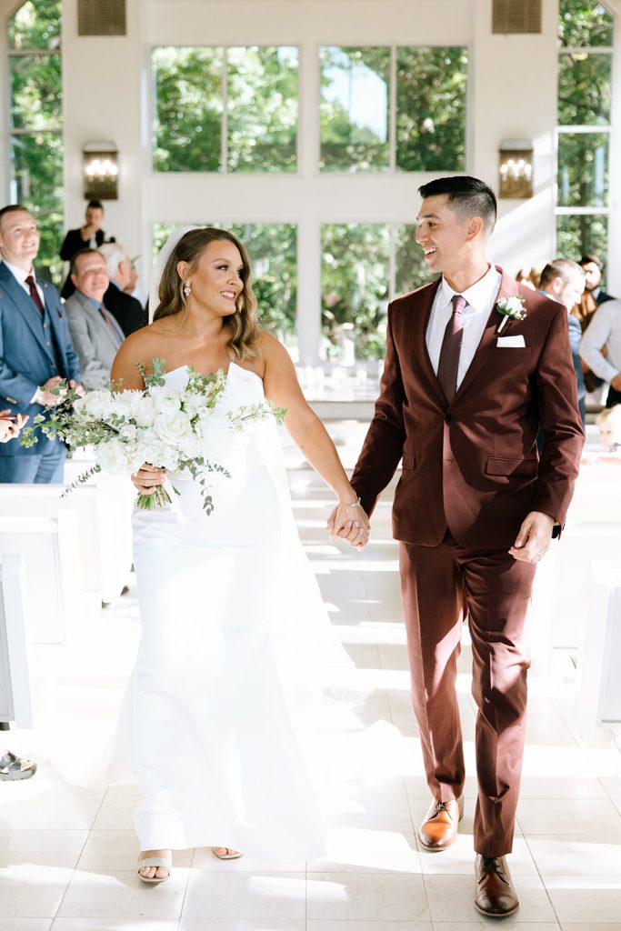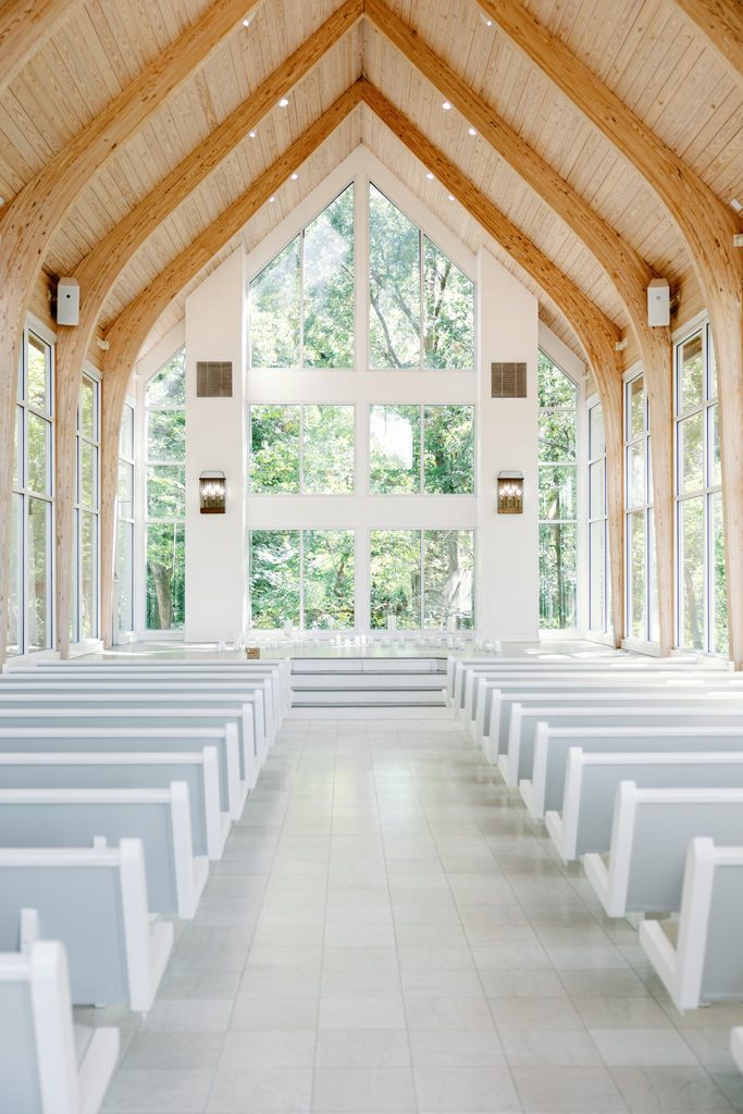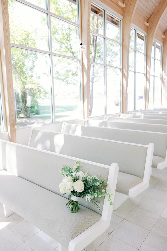 The expansive window walls of the charming Glass Chapel allowed the lush green trees outside to become part of Grace + Jay’s intimate wedding ceremony! This blending of indoors and outdoors made this the perfect place for the couple to recite their vows surrounded by friends and family.