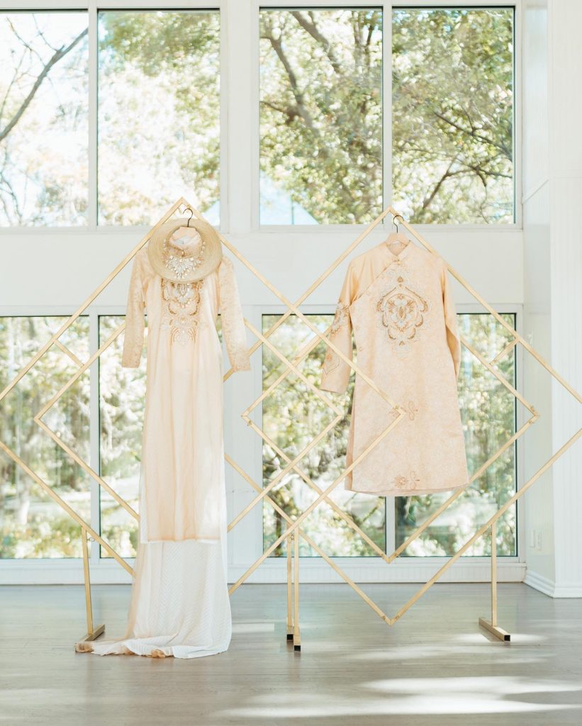 Helen + Brian tied the knot The Glass Chapel, where they combined their cultures for one ultimate wedding. The bride and groom both wore ao dai’s, which are traditional Vietnamese outfits, and later changed into a western wedding dress and suit. It’s so beautiful to see two people from two different cultures come together as one.⁠
