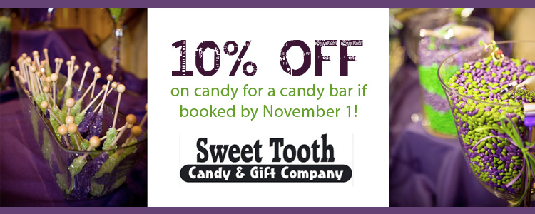 If you’re looking for a treat to satisfy your guests’ sweet tooth at your reception, don’t miss out on this great promotion! Sweet Tooth in Tulsa is offering 10% off candy for a candy buffet if you book now through November 1! While you’re at Sweet Tooth, be sure to check out their collection of Trollbead bracelets — great gifts for your maids! From now until October 31, Sweet Tooth is offering a free Trollbead bracelet with the purchase of a decorative clasp!