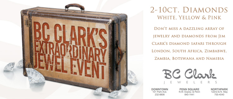 If you’re in the market for a dazzling diamond, you’ll want to stop by B.C. Clark Jewelers for their Extraordinary Jewel Event! Rare diamonds from Jim Clark’s diamond safari will be on display October 11 – 23 at all three B.C. Clark Locations! Enjoy!