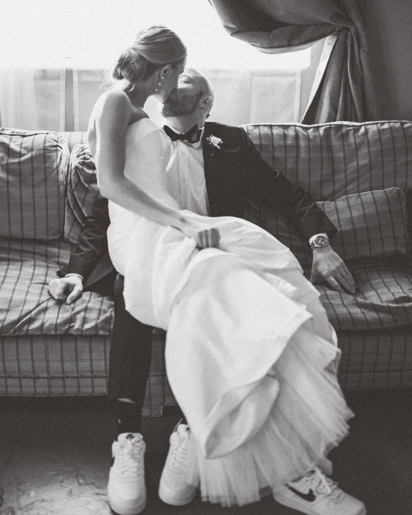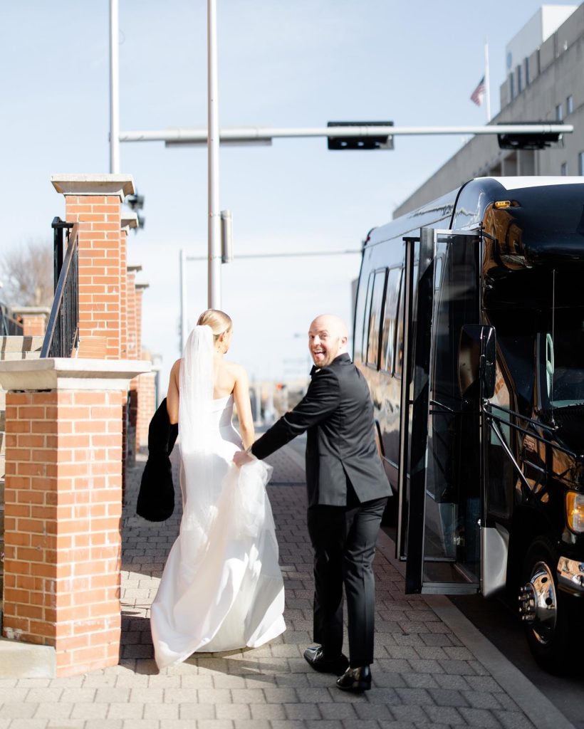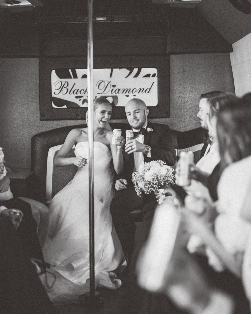 Benjamin + Caroline had a classic and sophisticated b+w wedding, but spiced the day up with a party bus! We love when couples incorporate fun things like this on their wedding day.⁠