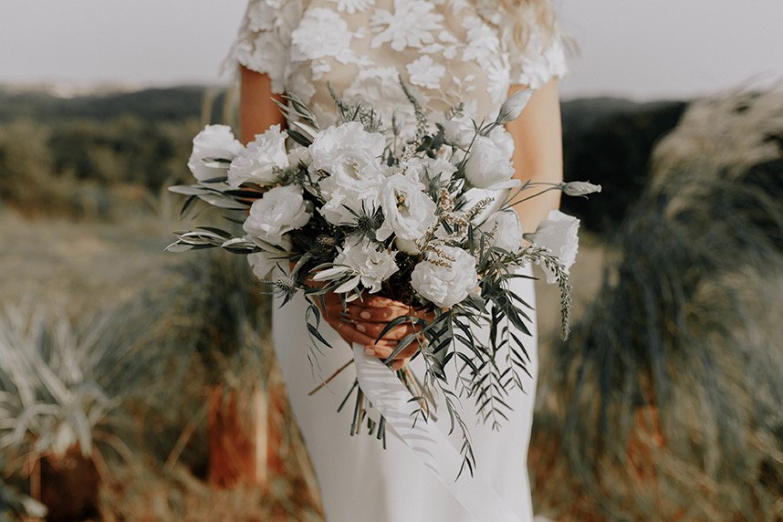 This intimate bohemian wedding captured by Caroline Eliza Co. absolutely wows in the Oklahoma countryside. With rustic details from Marianne’s Rentals and a stunning Chantilly Couture gown, we love every part of this beautiful day. Cheers to Alyssa and Jesse!