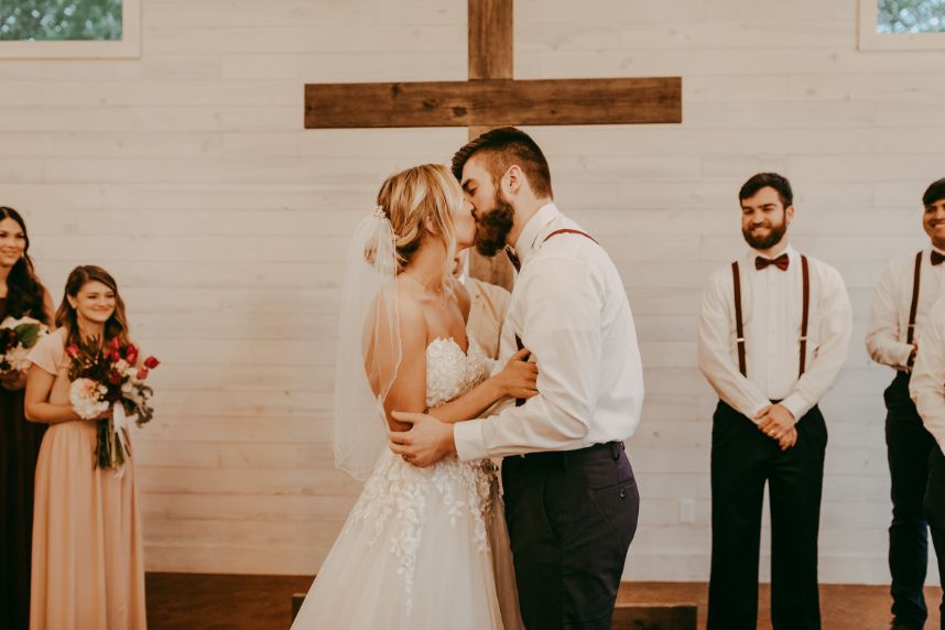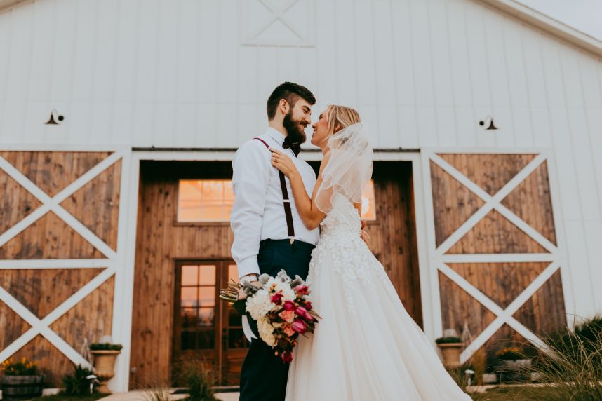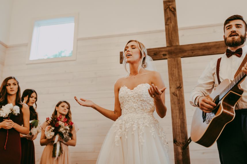 If you’re a bride looking to have an intimate family-focused wedding, then Camryn and Caleb’s romantic wedding at The Dowry will give you the sweetest inspo! The bride and groom led a song together during their ceremony, which was their favorite moment of their entire day (you’ve got to check out the adorable picture of it below!). As soon as we saw this intimate wedding with it’s stunning red details, we knew that we had to share!