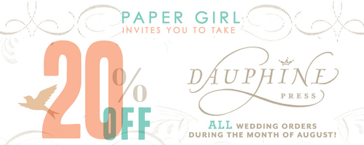 Another great deal from Paper Girl! Take 20% off all Dauphine Press orders during the month of August! What a steal!