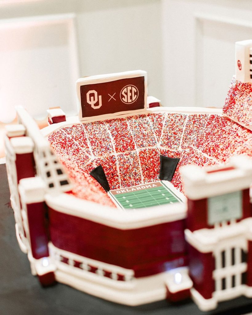Attention, Oklahoma Sooners fans! If you love the Sooners as much as the Meltons do, this cake by Amy Cakes is a must-see! Planned by Harper Mae Events, their gorgeous fall wedding was the perfect blend of elegance and personality—complete with stunning florals by Poppy Lane Design and a fun nod to their love for OU football.
