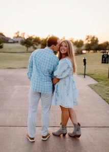 Tyler and Jessica met in 2013 during a study abroad trip to Kunming, China, 7,000 miles from home. As part of a small group of five students, they spent a lot of time together, navigating the challenges of unfamiliar foods, cramped spaces, and limited WiFi access, yet they had a lot of fun. After returning to the University of Oklahoma, their friendship continued and eventually blossomed into something more. Jessica, originally from Tulsa, received a visit from Tyler one weekend. During this visit, Tyler spent a whole day alone with Jessica’s parents while she was at work. At the end of his trip, he remarked, “Do your parents know everyone in Tulsa?” After many visits to Tulsa, Tyler realized that indeed her parents almost know everyone, and he now considers himself an honorary Tulsan.
