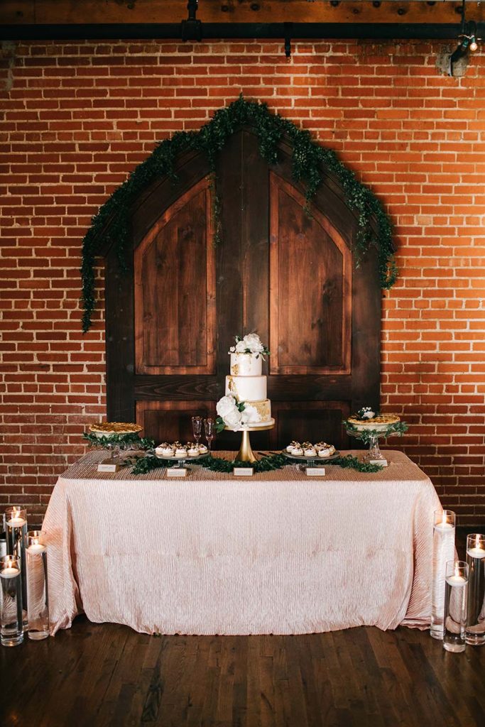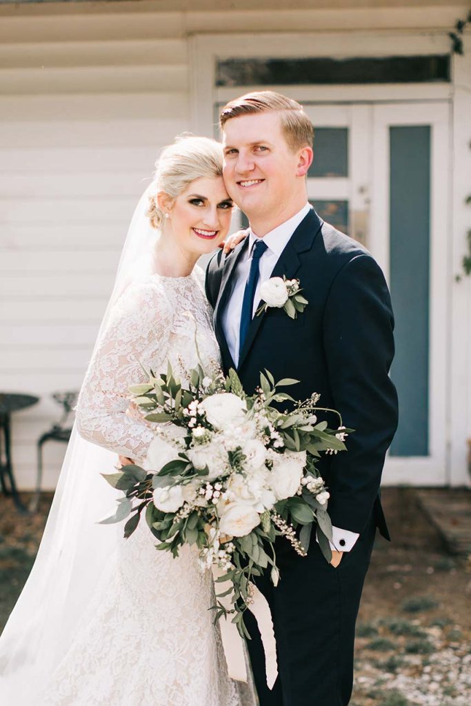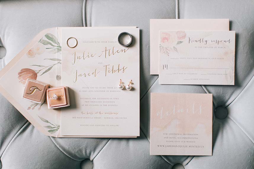 At the historic Hall at the Railhouse amidst romantic candlelight and creamy hues of ivory and blush, high school sweethearts Julie and Jared said “I do” and began a wonderful new chapter. With the help of some incredible Oklahoma wedding vendors Julie and Jared truly had the celebration of their dreams. Julie found her stunning gown at Bella Rose Bridal and completed her look with accessories from Prescott Bridal and hair and makeup by Lexi Faught. Her maids were lovely clad in mix-and-match gowns from Prim. With a hint of watercolor, the invites from Paper + More set a whimsical tone for the day, while soft and dreamy florals from Emerson Events and rentals from Marianne’s Rentals Special Event Solutions and Ruby’s Vintage Rentals perfectly complemented the industrial space. Their guests dined on delicious catering by Abbey Road Catering and the tastiest wedding cake and assorted pies from Amy Cakes. When it came time for the big exit, the happy couple made their way to the waiting limo from King’s Limousine and set off on their next big adventure! Cheers to Julie and Jared and thanks to Sarah Libby Photography for capturing every gorgeous detail!
