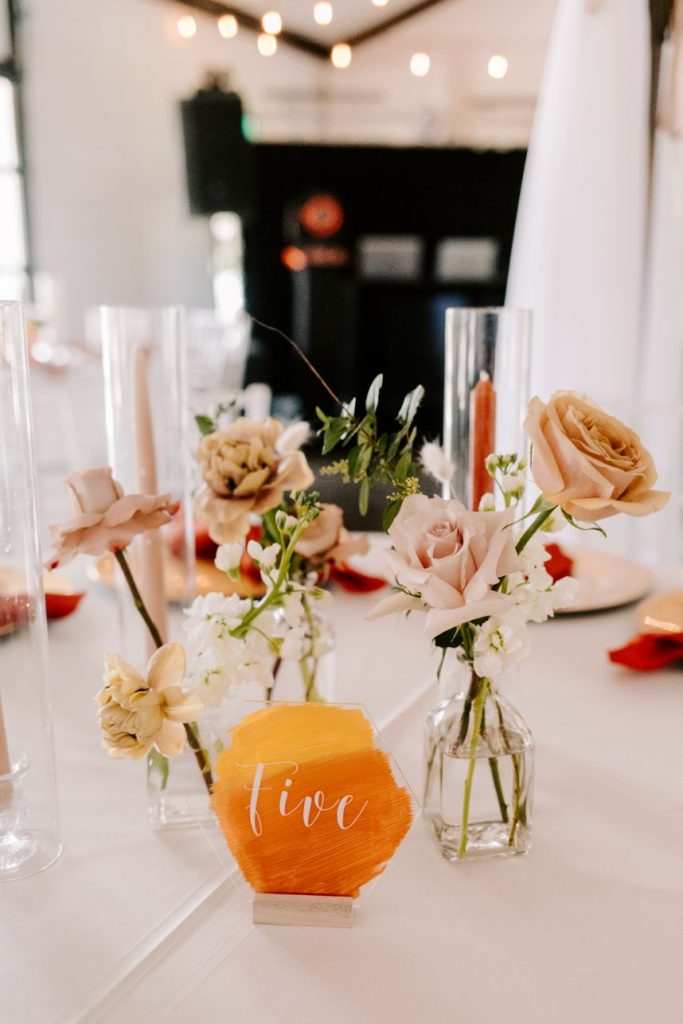 Katherine and Gabriel said, “I do,” to a wedding with sunset hues at Dream Point Ranch. The couple met online and quickly fell head over heels for another. After knowing they had found their forever, Gabriel proposed while on vacation in the Dominican Republic. Katherine said the best part of their proposal was, “My family was there to capture the moment.” So special! We all know once you find the perfect guy and get a ring, it’s time to plan your dream day. The couple decided to have their dream day on a May afternoon at Dream Point Ranch with the venue’s breathtaking views. Katherine and Gabriel planned a gorgeous day that represented them as a couple, using the sunset hues as their inspiration.