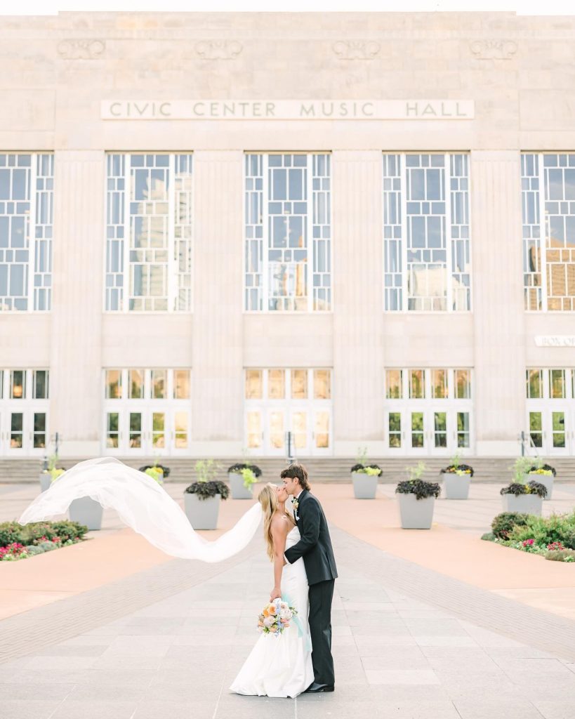 Katie & Jimmy’s summer celebration at the Civic Center Music Hall was an absolute dream! The pastel florals added a pop of color to the already beautiful art deco architecture. There are so many details from this day that we adore!