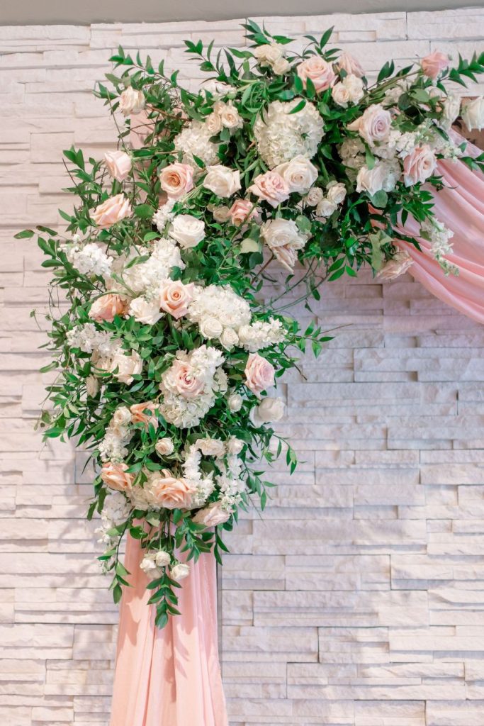 We are still blushing over the details of Kayla and Peter’s gorgeous wedding! Kayla began her big day by getting ready with her bridesmaids in the bridal suite at Coles Garden. Every so often, Kayla peeked out the window to see her vision coming to life right before her eyes. Kayla decided to reveal her bridal look to Peter when she walked down the aisle. Of course, Peter was overcome with emotion as he watched his blissful bride walk toward him. Under a gorgeous arch completed with blush blooms from Tony Foss Flowers, the couple read their personal vows in front of all the people they love and cherish the most. After saying “I do,” Kayla and Peter enjoyed a private dinner from Harris Custom Catering before entering the reception. The couple danced the night away with guests and topped it all off with a sweet treat from Amy Cakes to end the night.