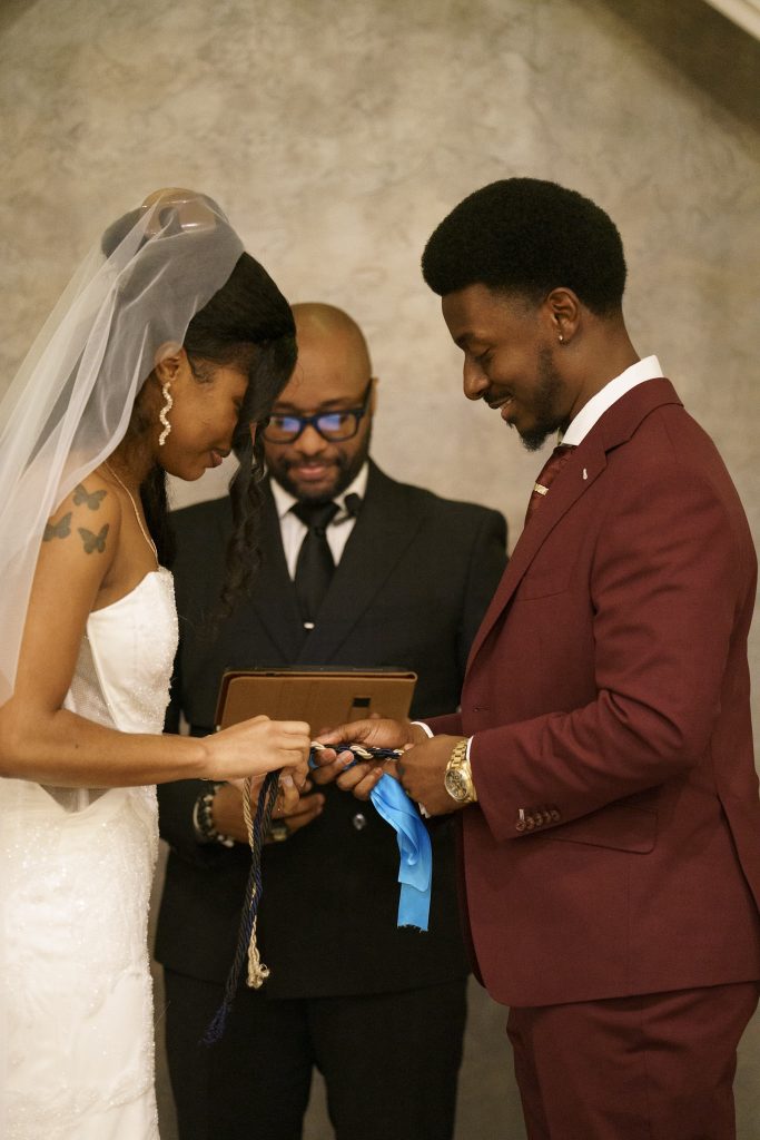 Kynnedy & Dalontae’s fall wedding was filled with faith, fun, and unforgettable moments. Their ceremony centered around their shared faith, featuring praise and worship and a symbolic three-strand cord to represent their foundation in Christ. It was a heartfelt celebration that beautifully reflected their love, values, and joy in starting this new chapter together.