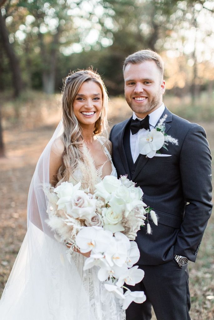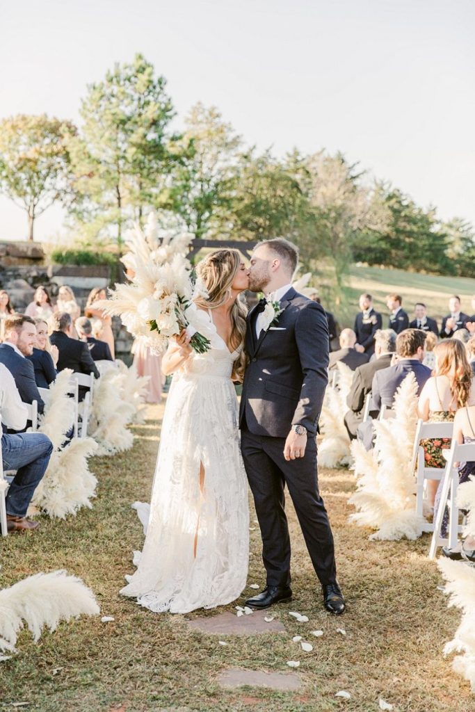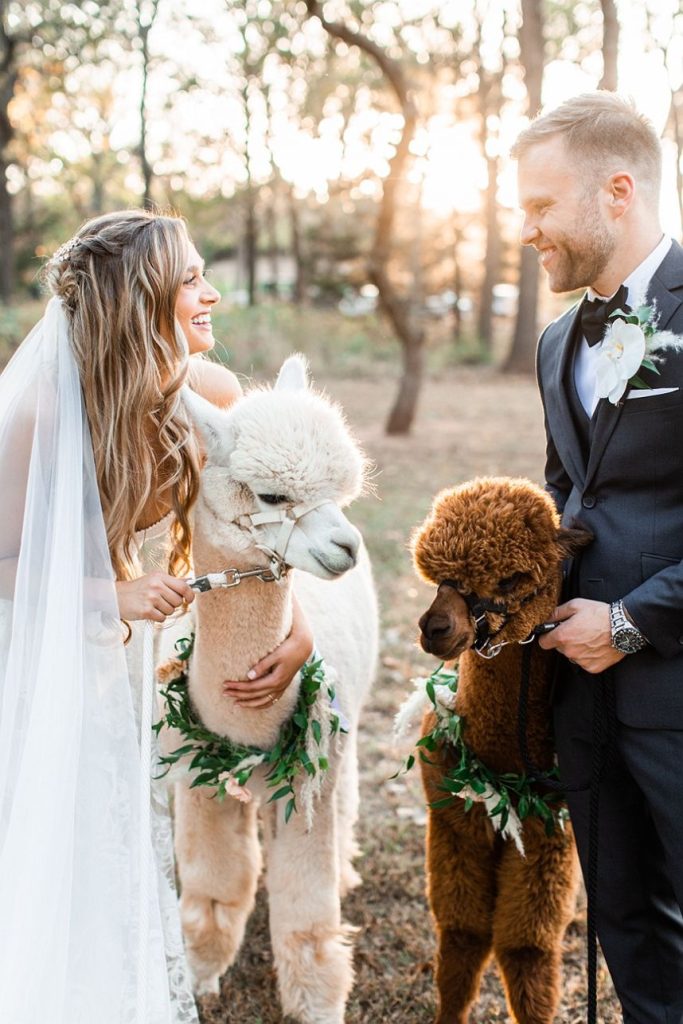 Logan and Collin wanted their day to feel intimate and laid back despite the number of guests in attendance, so a soft boho wedding in blush and neutral tones was the perfect answer! The pair went to high school together, but their paths didn’t really cross until they went on the same senior trip and got to know each much better then. Now, in their wedding at Esperanza Ranch, the couple had access to a sprawling, picturesque property where a food truck, s’mores, and yard games all complemented the vibe they were going for. The talented Tammy Odell Photography captured some priceless moments throughout the evening, and it was extra special for Logan to walk down the aisle since they didn’t see each other all day – the two had only left each other notes the night before. She and Collin said “I do” in a dreamy outdoor ceremony with waterside views and the rest of the night went off without a hitch thanks to the careful planning of Embellished Weddings. Bohemian bliss around every corner put an elegant twist on the rustic setting, and bride and groom even posed with some alpacas, which were a big hit among guests! Everyone enjoyed down-to-earth food options, plus sips from Blue Label Bartending, and sweet s’mores to end the night. We love everything about this effortless boho wedding that takes laid-back to a new level. Read on for a note from the bride about a surprise that turned into one of her favorite wedding day memories. Cheers to the Ketelslegers!