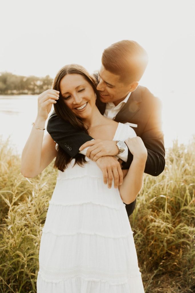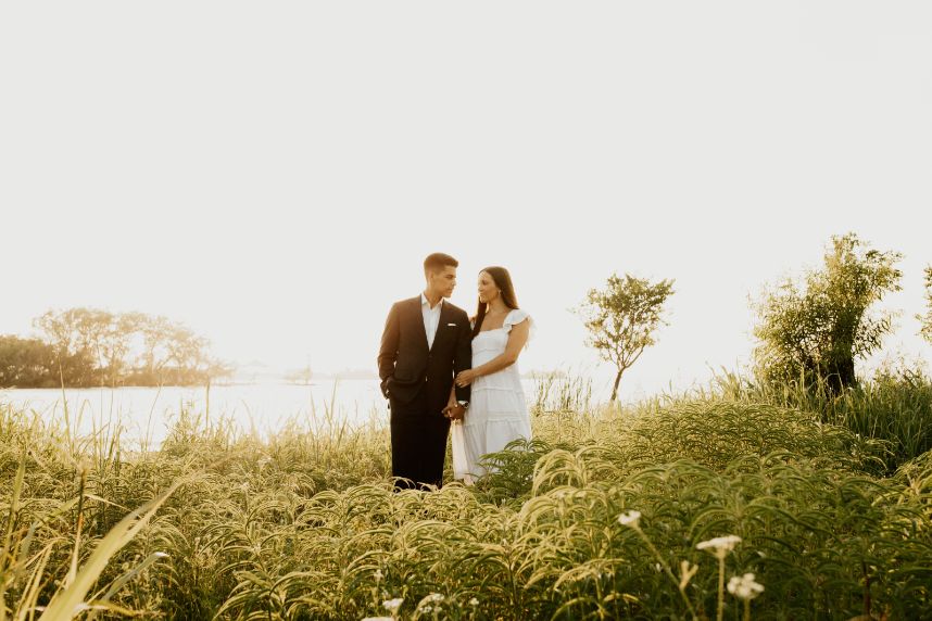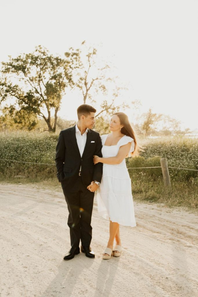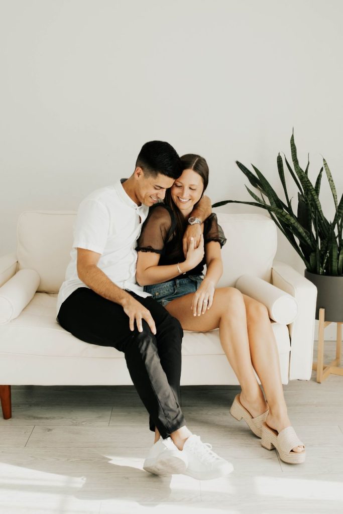 Olivia and Luis make the sweetest pair in their studio and lakeside engagement session captured by Chandler Rae Photography where both the serious and playful sides of their relationship were evident and adorable. They first met at Oklahoma Christian University where Luis played basketball and Olivia played soccer for the college. One day, Luis decided to walk up to Olivia in their shared cafeteria and introduce himself, they went on a date shortly after, and the rest was history!