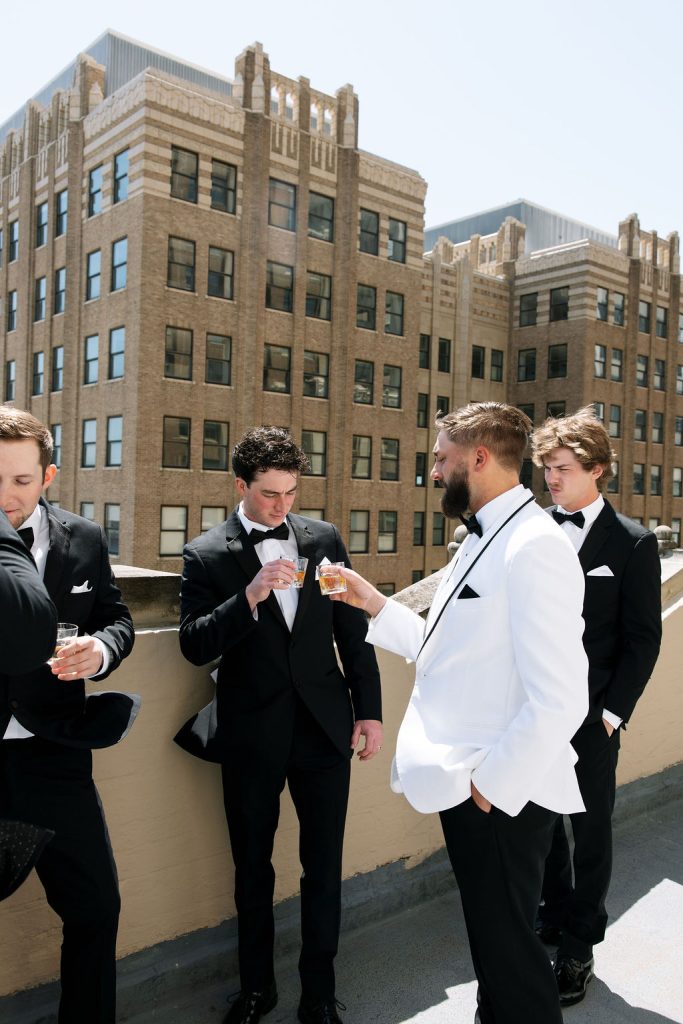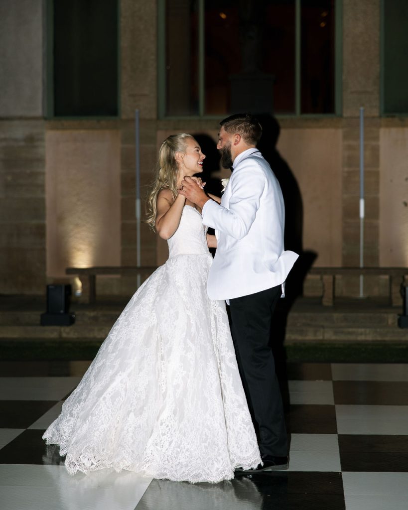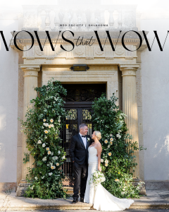 The couple and their wedding party prepared at the Tulsa Club Hotel. Guests enjoyed a unique dinner catered by Andolini’s, which started with salads and bread, followed by a “Texas de Brazil-style” service of passed pizzas and pastas. RedLine Entertainment kept the dance floor packed for a vibrant celebration that guests were reluctant to leave.