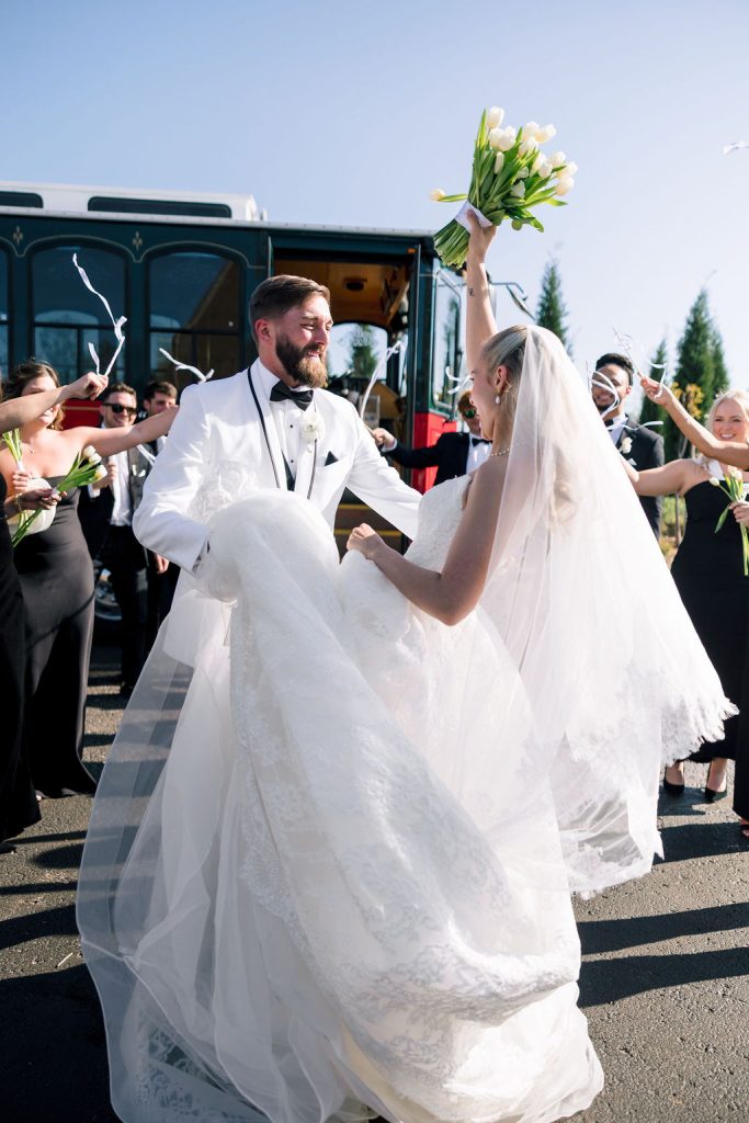 Lauren & Alec held their romantic spring wedding with a church ceremony and a lively reception at the elegant Philbrook Museum of Art. The seamless transition between their venues was courtesy of Old Urban Trolley.