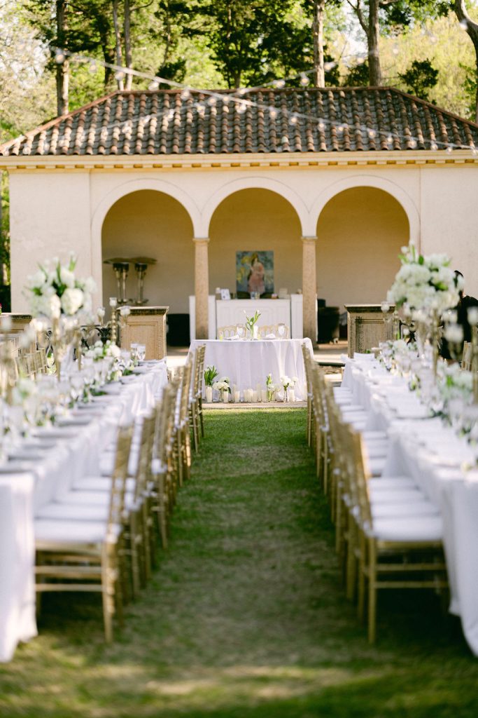 Meticulously planned by Erielle Gray Creative, the decor perfectly enhanced the romantic ambiance, thanks to stunning florals from The Flower Shop Pryor and glowing candelabras and other rentals from Party Perfect Event Rentals.