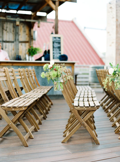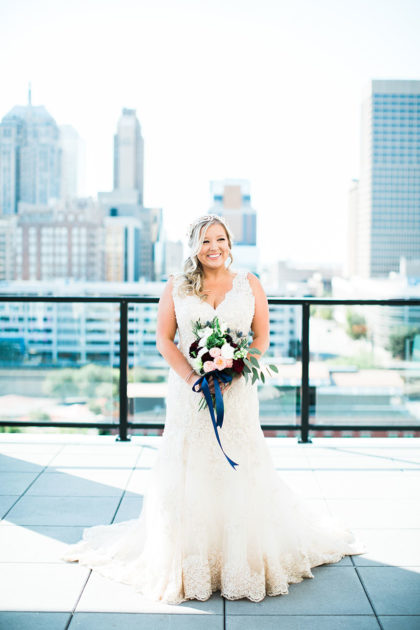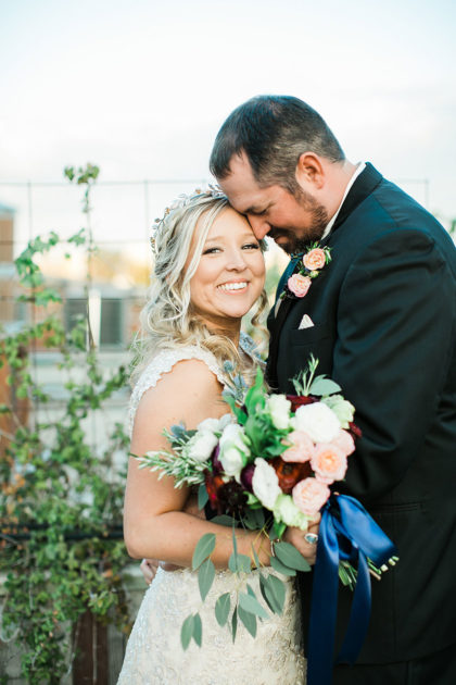 The couple knew they wanted a fall wedding, but the date couldn’t interfere with their love of football season. They finally picked October 4 and were married near downtown Oklahoma City in Automobile Alley. They chose Plenty Mercantile as a venue, which provided a perfect rooftop wedding with a great view of the OKC skyline.