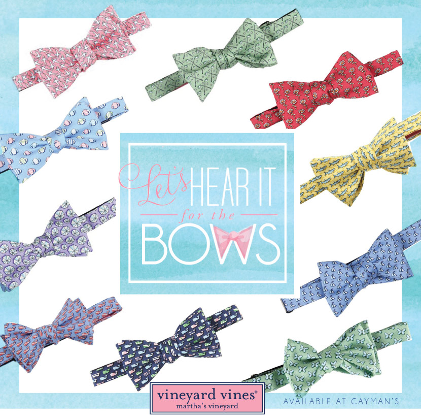 If you’re looking to add a little quirky or original touch to your bridal party style, we love these charming bow ties by Vineyard Vines. Any groom or groomsman will look dapper sporting these little ties, and they come in all sorts of fun pastels and patterns! So think outside the traditional black tie and add a creative twist. Visit Cayman’s in Norman to find the perfect one!