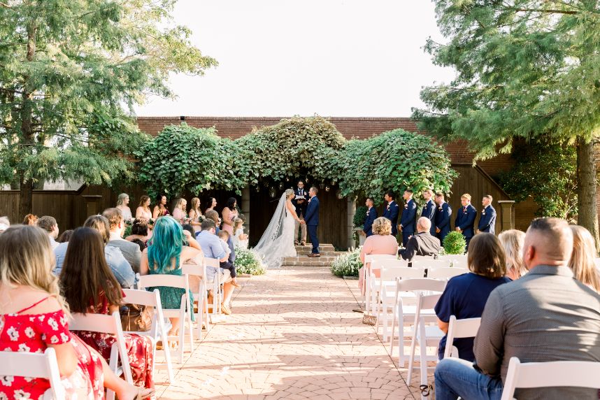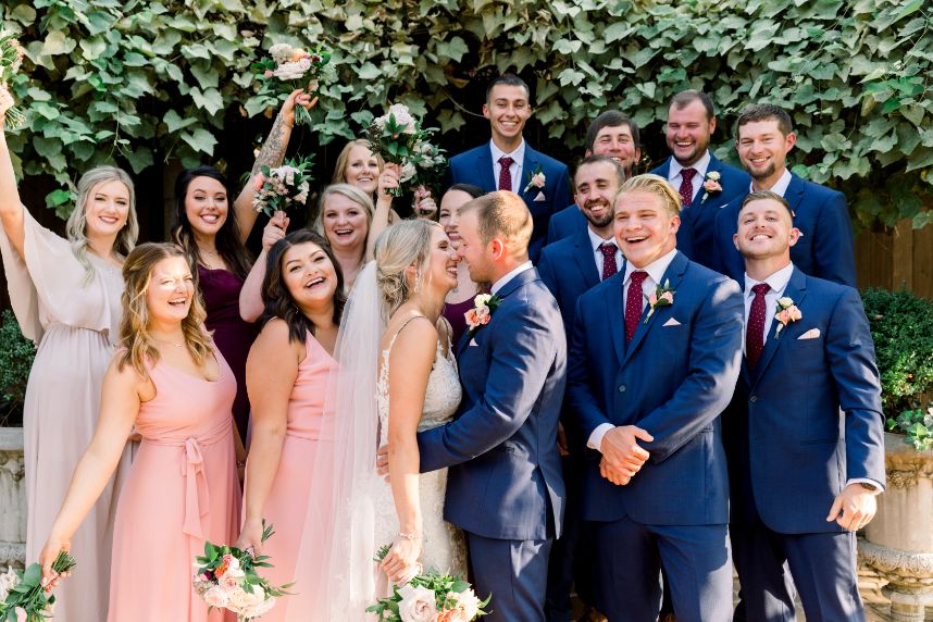 Amber and David’s light and airy wedding at Festivities Event Center in El Reno was oh-so stunning. From the start with the gold welcome mirror with calligraphy to the sweet yet simple white and gray invitations, we knew this wedding would be one to remember. The outdoor ceremony had an invigorating ivy arrangement, making their “I do” look like a fairytale scene. Amber wore a lace mermaid gown with a low-bun, sheer veil and glowing makeup look. Her bridesmaids wore tones of light pink and blush, while the groomsmen sported navy suits with burgundy ties. The color combination flowed and paired so well throughout the entire event, giving us all the spring vibes. The light and airy reception was held in a white room with flourishing florals at every turn. Marquee letters lit up the room, adding to all the romance. Each tabletop featured a light pink runner, a line of greenery, pink and green Estelle-colored glasses, gold utensils and wicker placemats. Thankfully, Mary Keen Photography got all the goods from this wedding at Festivities on camera so we can all get a glimpse. Check out the gorgeous gallery below and a quote from the bride on her favorite wedding day memory. Cheers to the newlyweds, Mr. and Mrs. David Adams!