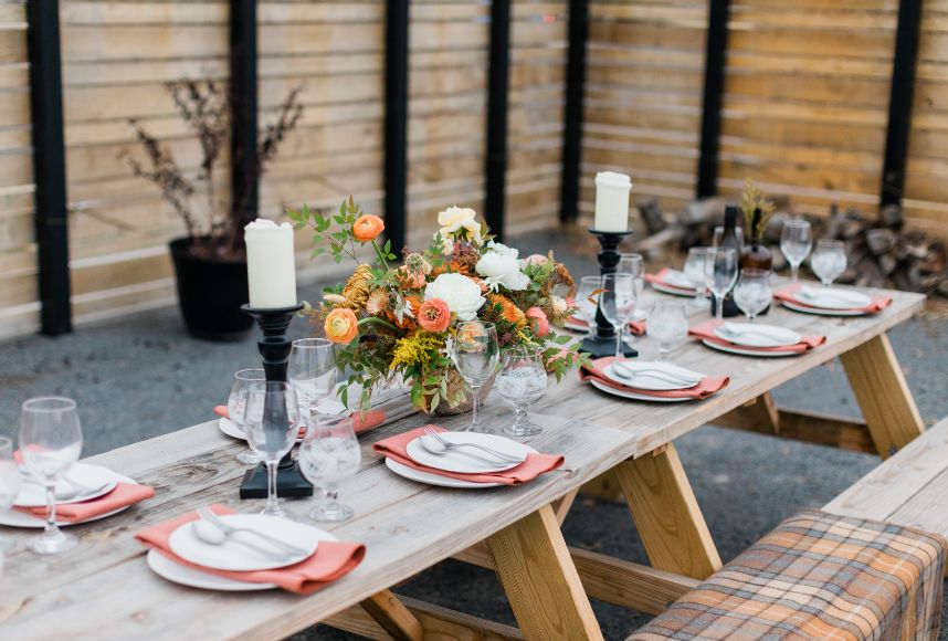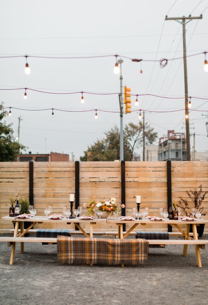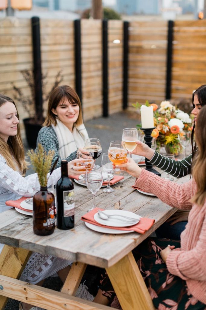 Looking for a fun, unique way to celebrate your local bachelorette party? Look no further than Angry Scotsman Brewing! Their super-trendy beer garden provides all the good vibes, so you only need to worry about bringing your best gals and your party pants! This ultra-cool hangout in Oklahoma City has both indoor and outdoor accommodations for events of any kind, and their variety of 24 taps of craft beer makes us want to try them all! With availability seven days a week, you can’t go wrong booking your bachelorette party or other events here. Gorgeous autumnal florals from The Medieval Garden are the cherry on top of this string-lit soiree and with a table laden with decor and rentals from Marianne’s Rentals Special Event Solutions, this whole local bachelorette party shoot is giving us major FOMO! Cheers!