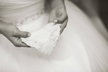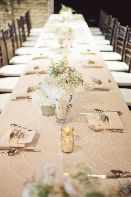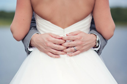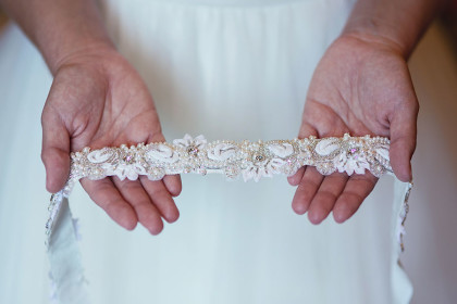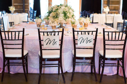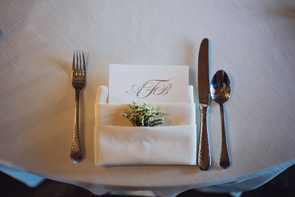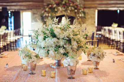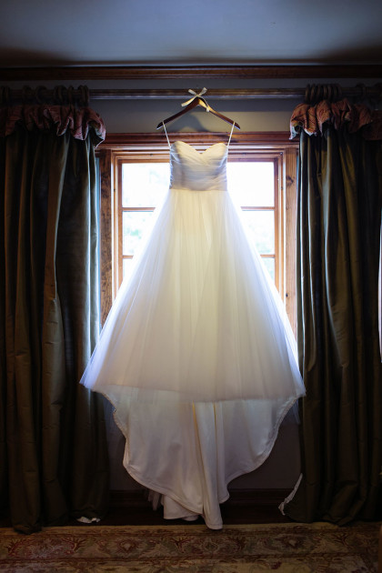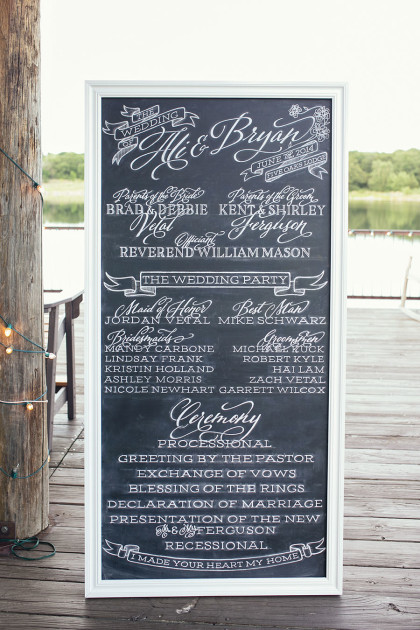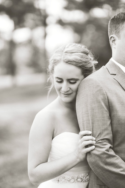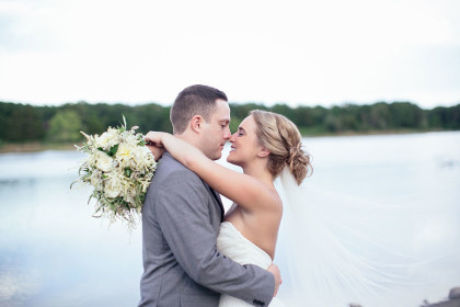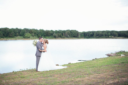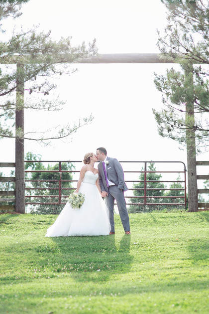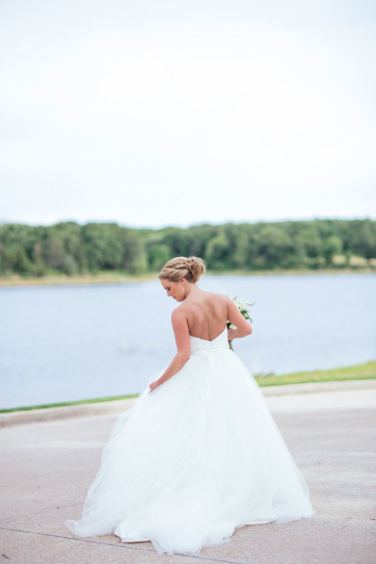 Alison Vetal married Bryan Ferguson on June 7, 2014, at the Five Oaks Lodge in Jenks, Oklahoma. Ali’s dreamy candlelight gown by Tara Keely from the Lazaro Collection featured a sweetheart strapless ruched silk bodice wrapped with an a.b. Ellie Collection belt. Her tulle ball gown skirt cascaded into a semi-cathedral length train. She wore a custom-designed Toni Federici cathedral veil of gossamer illusion with seed pearl and crystal edging. Borrowed pearl earrings and a natural bouquet completed Ali’s look, and she carried a handkerchief that her mother and grandmother carried at their weddings.