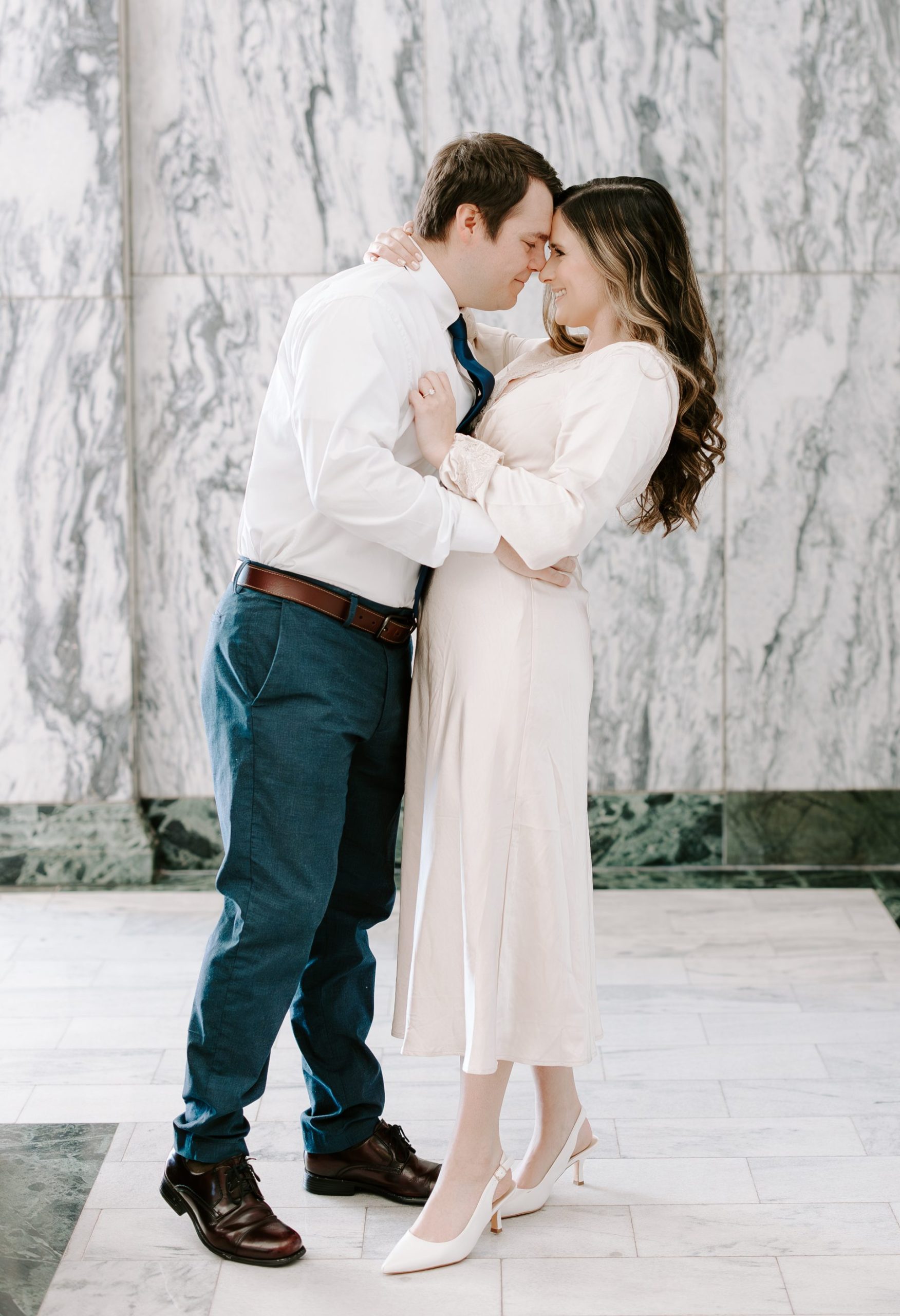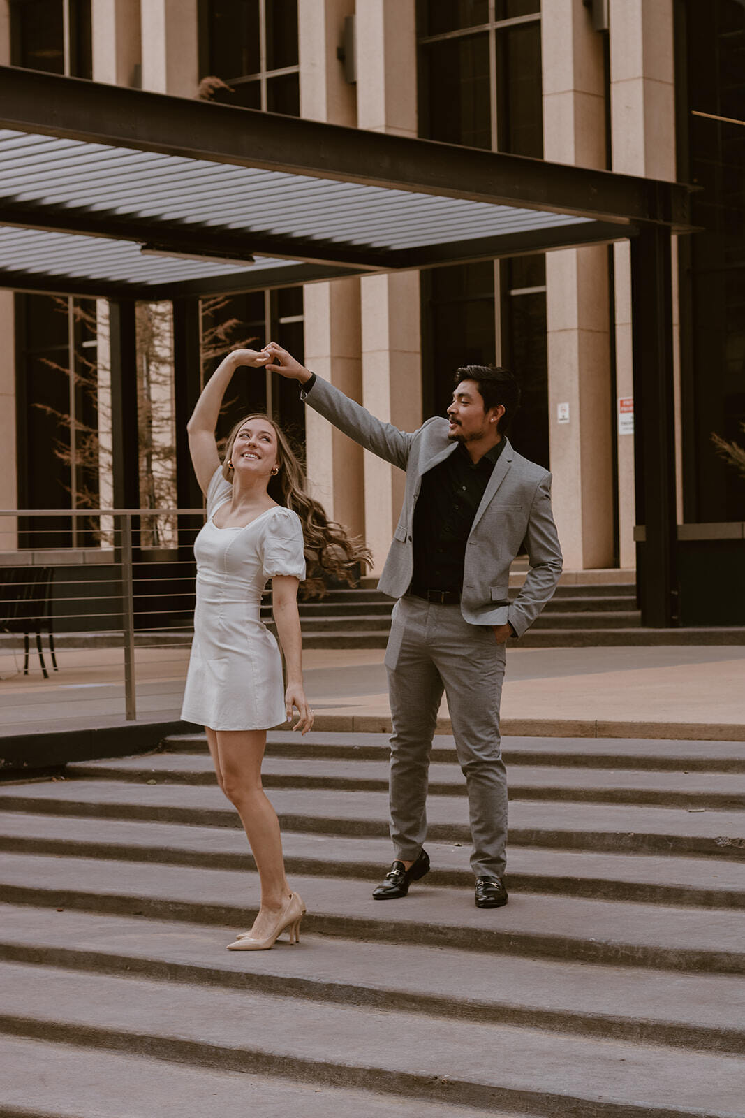 Following dinner, they took yet another walk around Scissortail Park, just like their first date. As they reached the bridge, Jimmy suddenly began acting nervous. He asked Angela to look at the cars passing by, hoping to distract her, but she immediately sensed something was up. When she turned around, he was already down on one knee, holding out his mother’s engagement ring. In that special moment, he asked her to marry him. Angela and Jimmy are beyond excited to finally tie the knot in April 2025!