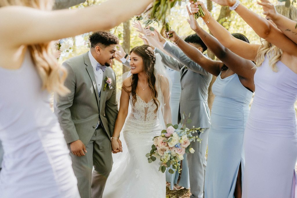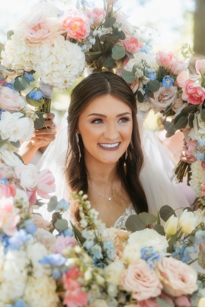 We are swooning over this classic romantic wedding! These high school sweethearts married in spring with colorful blooms and personalized elements. The brides stunning gown from Bella Rose Bridal – Edmond added the perfect touch of glam.