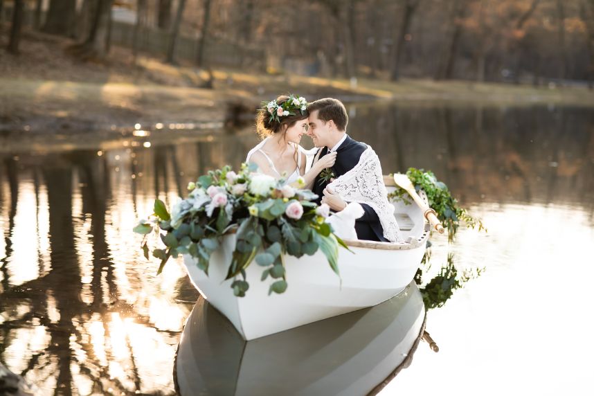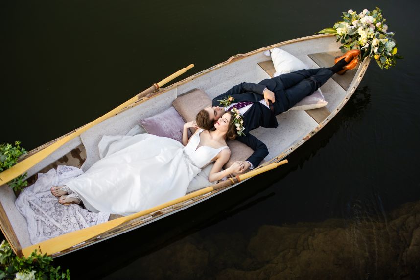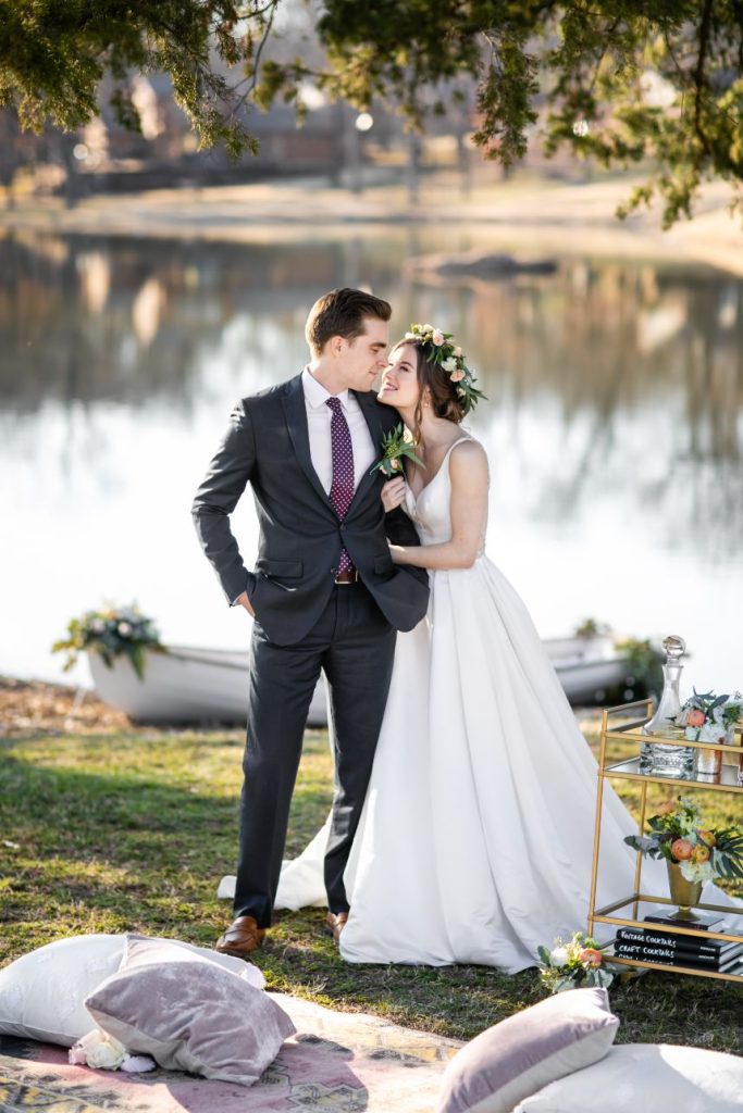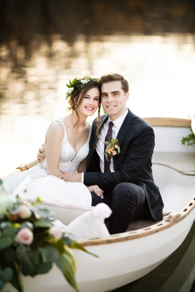 Jump on the love boat with us in this romantic styled shoot at Spain Ranch, designed and styled by Nicole Allen Events! Party Pro Rents provided cozy furniture rentals and props for this al fresco love affair. The light pink color palette mixed with grey velvet linens and candlelit tablescape provide the perfect dreamy atmosphere. Make sure and take a peek at the couple’s sweet rowboat that’s totally stealing the show in this shoot! All captured by Picturesque Photos by Amanda, this day is as lovely as ever!