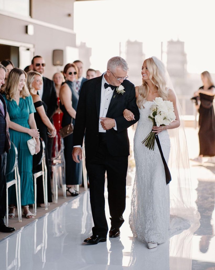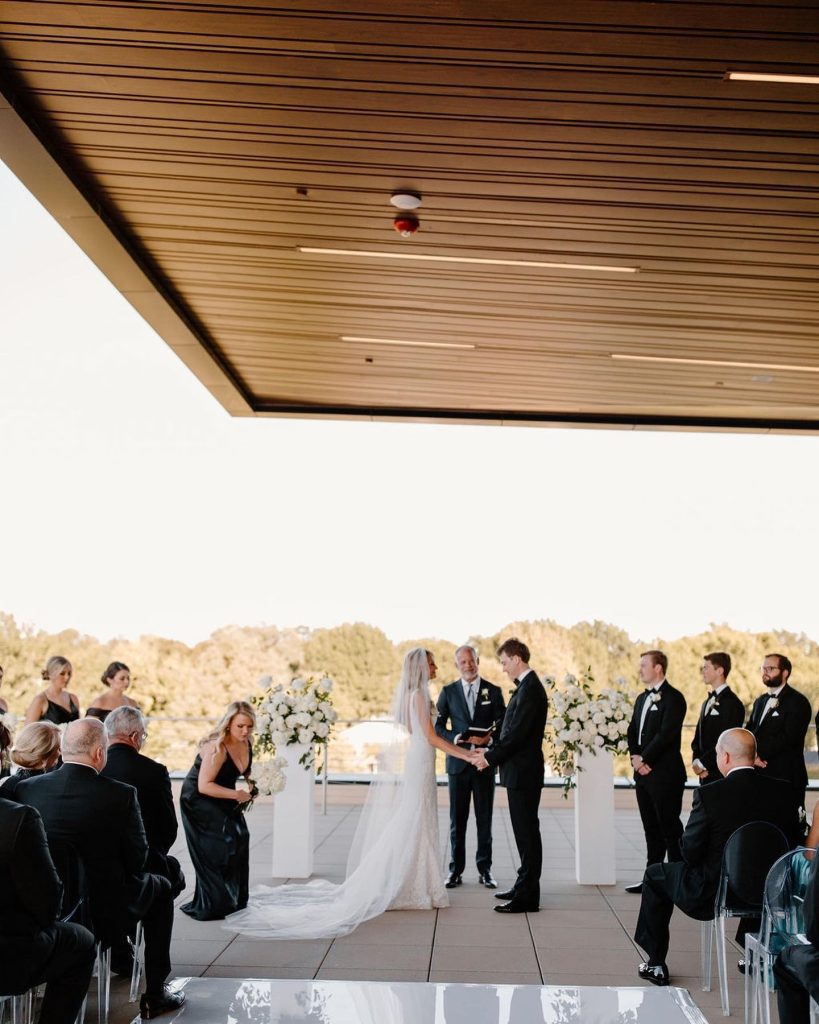 Love and elegance take center stage on Ryann + Peter’s rooftop wedding at The Gathering Place Tulsa, Discovery Lab. Black, white, and forever in awe.