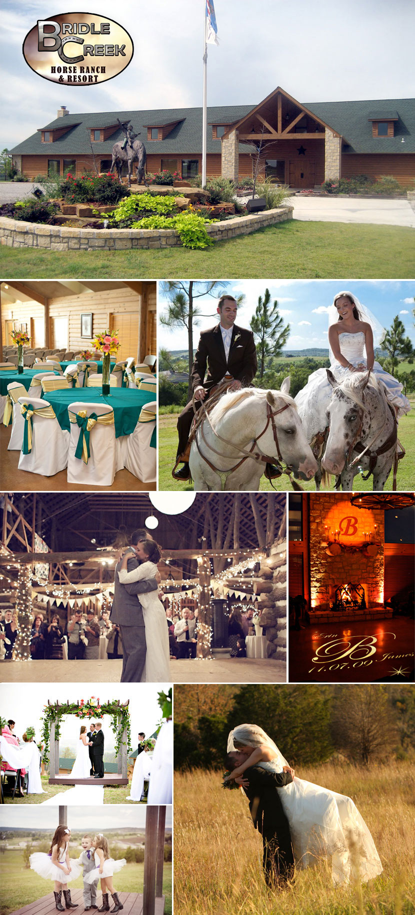 Atop acres of beautiful green countryside, Bridle Creek Horse Ranch and Resort provides a stunning backdrop for any bride’s wedding ceremony or reception. Bridle Creek is conveniently located just outside Tulsa in Osage Hills, Oklahoma and its 7,500 square foot lodge brings rustic elegance to any affair! This luxe location can provide accommodations for out of town guests, kitchen facilities for catering purposes, tables and chairs, horseback rides, and even a stagecoach and buggy! The staff works hard to make your day special and beautiful, and with a location like this, how could it not be?! For more information, visit their website or call 918-288-2882.