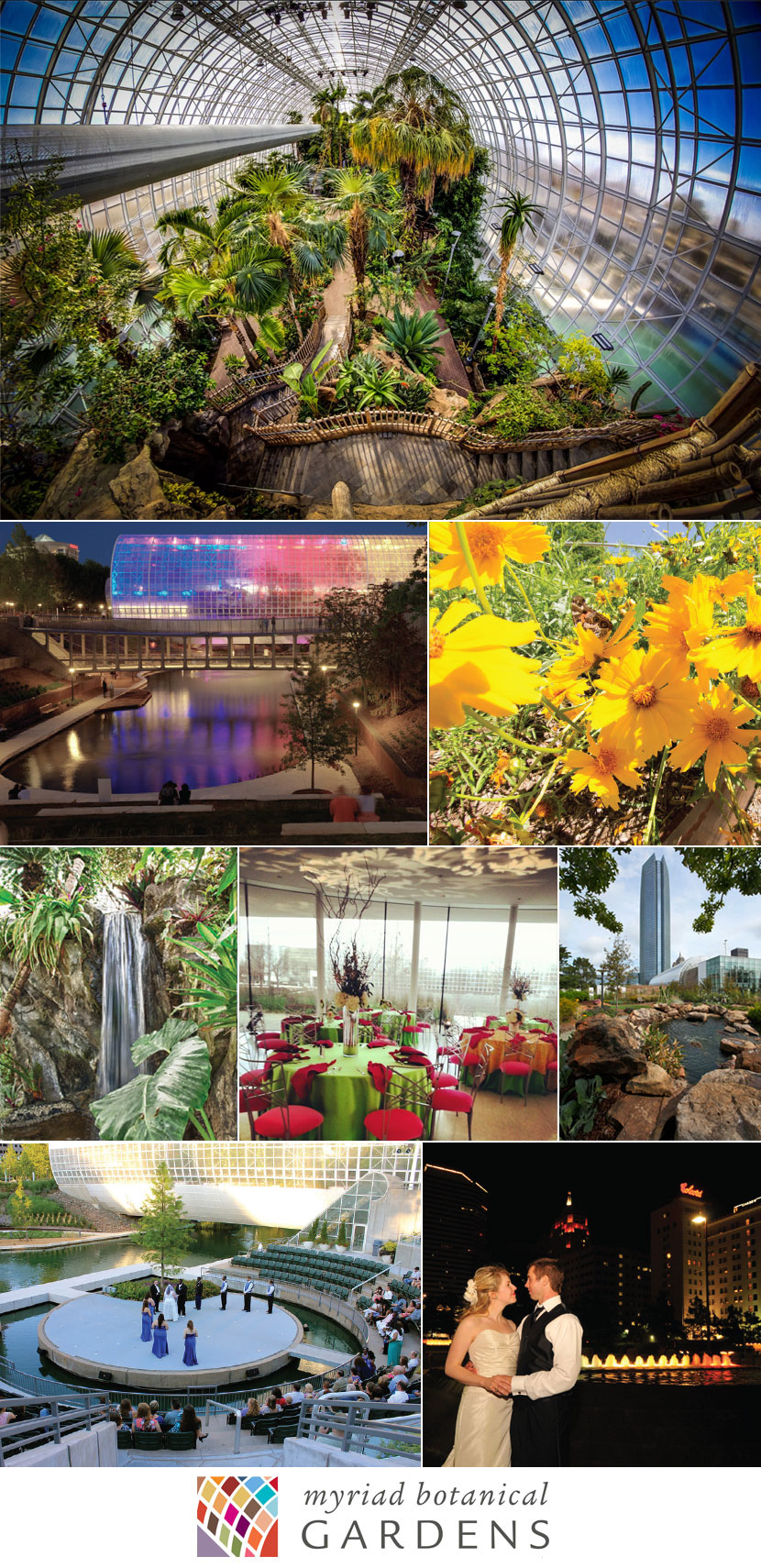 Conveniently located in the heart of downtown Oklahoma City, the Myriad Botanical Gardens offers brides more than 12 event spaces to choose from and is located close to the city’s most luxurious hotels. A tented event on Grand Lawn would be lovely for a summer soiree, or a ceremony in the tropical oasis of the Crystal Bridge would give any wedding a tropical feel. For an intimate family wedding, we recommend the Meinders Garden. And the Myriad Gardens Restaurant Space offers a wonderful blank canvas to create the reception of your dreams. Call for a tour of Myriad Gardens at 405.297.3996 or visit their website for more information. Enjoy!