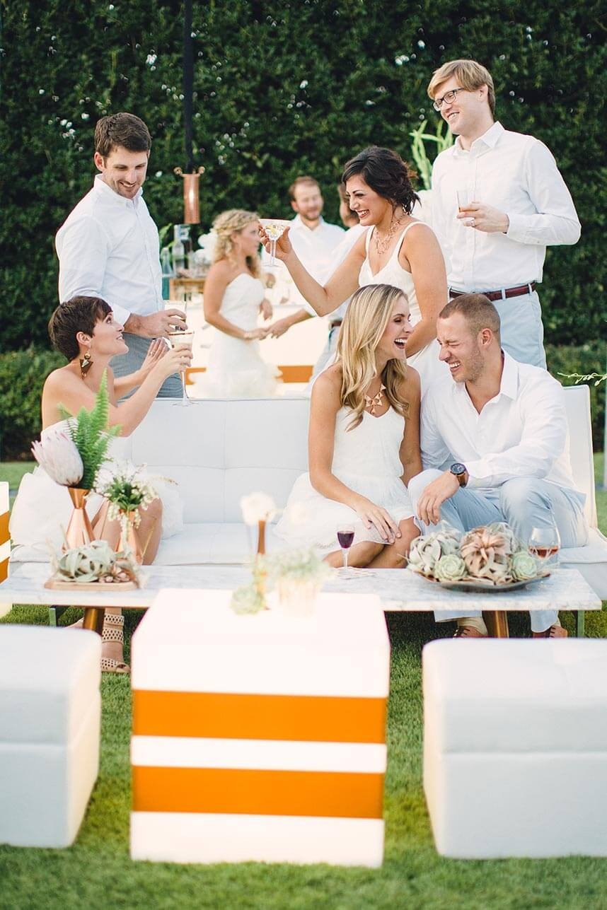 Create a relaxing and fun space to entertain guests throughout the night with chic, lounge furniture. We love how couples are getting creative with styled party spaces that fit their personalities perfectly!