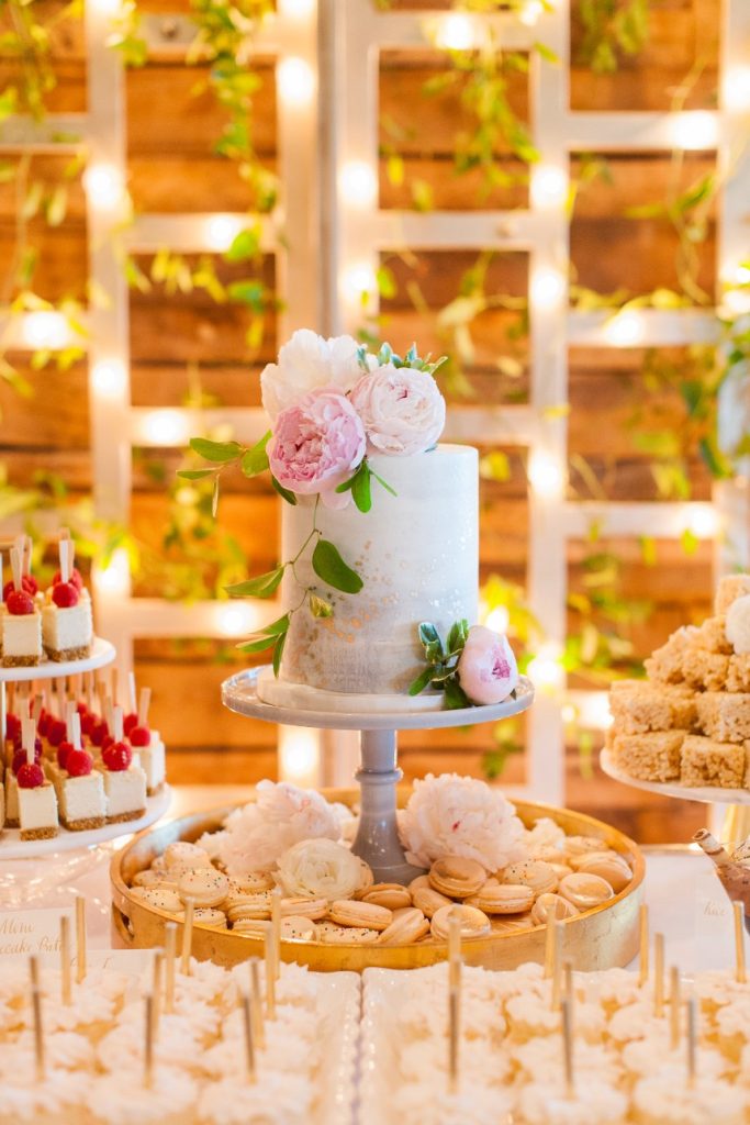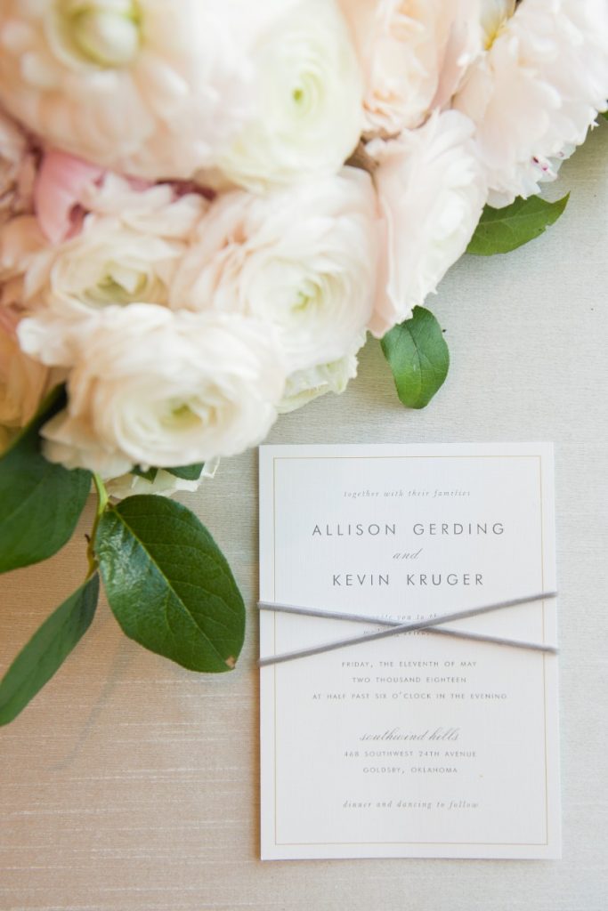 Classic invites from Paper + More really set the tone for this beautiful wedding. Allison’s maids looked so gorgeous in blush gowns from Prim, and everyone’s hair was perfect thanks to Lexi Faught! With the help of Marianne’s, Mood, and Poppy Lane Design, mixed white peonies, greenery and blush accents draped every inch of the venue and large candelabras gave the evening that sparkle mood lighting. Cake and treats from Amy Cakes satisfied guests’ sweet tooth, and Oklahoma wedding videographer Pen Weddings was on hand to capture the sweetest video, be sure and scroll to check it out! Cheers to Allison and Kevin (and their adorable furry friends)!