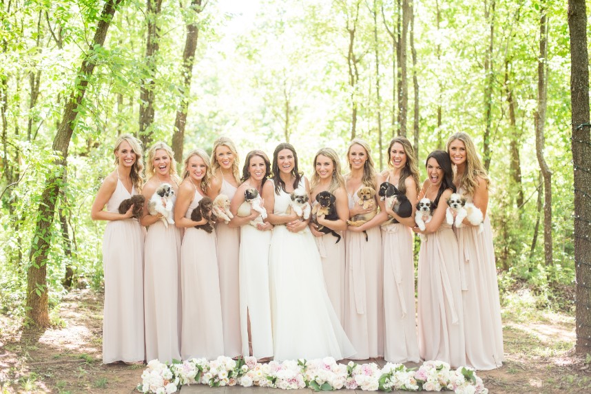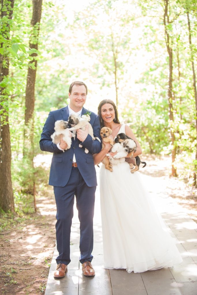 We literally squealed when we saw the adorable surprise guests at Allison and Kevin’s luxe pastel Southwind Hills wedding! Allison and Kevin were wrapping up pictures as Allison’s sister and wedding planner surprised everyone with a litter of puppies to hold. “It was quite possibly the most mind-blowing, amazing experience of my life (outside of getting married of course!). You couldn’t wipe the shock and tears from my face,” said the bride.