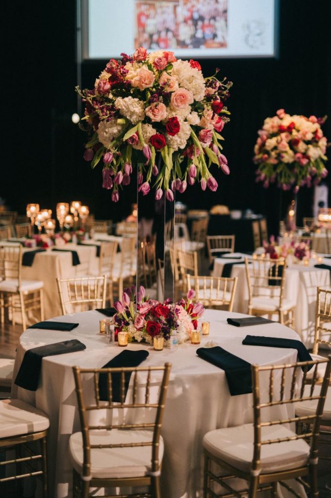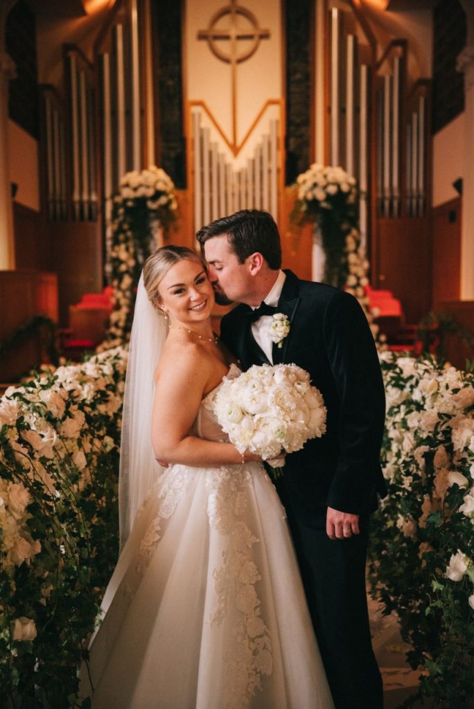 Decor from Marianne’s Rentals and Mood Party Rentals created the perfect backdrop for Victoria and Jarred’s luxe winter wedding in Ardmore, Oklahoma. Beautiful floral arrangements of tulips and roses designed by The Fleuriste lined the tables and were strung neatly below the nine-tiered cake, a true centerpiece of the venue created by Amy Cakes! The rest of the night was perfect just as you would expect a New Year’s Eve wedding to be. Victoria changed into her reception dress from from Chantilly, and they danced the night away thanks to the Box Talent and even watched the ball drop. They walked into marriage and a new year together…what more could you ask for?!