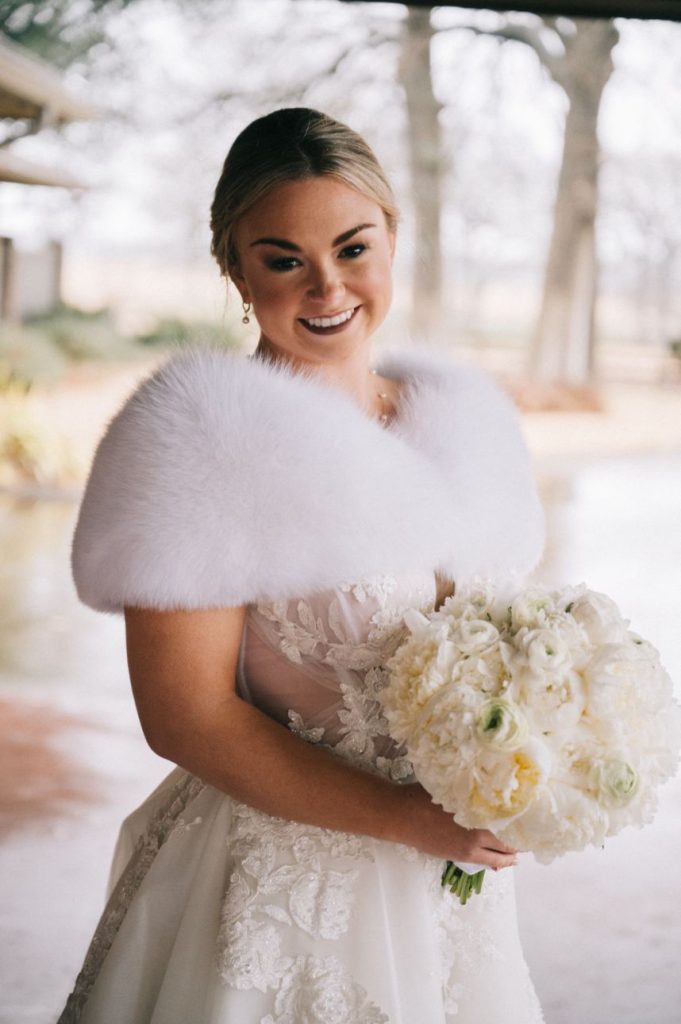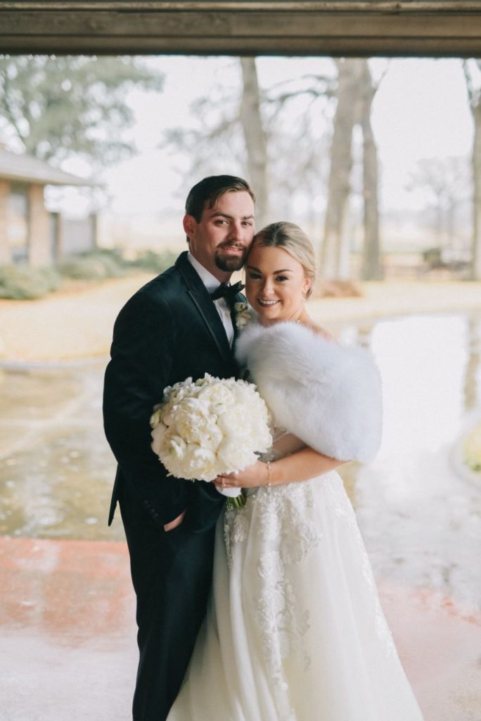 Every girl dreams of the perfect wedding, but Victoria Chapman got to experience hers. Her luxe winter wedding festivities began with a rehearsal dinner the night before at The Stables at Washita Farms. The next day started with rain, but Victoria and her groom, Jarred, did not let this stop them from having the most enchanted wedding day! M Salon helped Victoria get ready, and next up was the first look. As the bride and groom walked out to do their first look, rain began to pour. It was unavoidable, but Jarred’s face as he saw Victoria in her wedding dress was all that mattered at that moment. The gown, however, was no simple dress; the bride’s mother and grandmother gave her Galia Lahav ball gown an heirloom touch by sewing pieces of their own wedding dresses inside the gown. It was a beautiful moment for the bride where tears and laughter were shared.