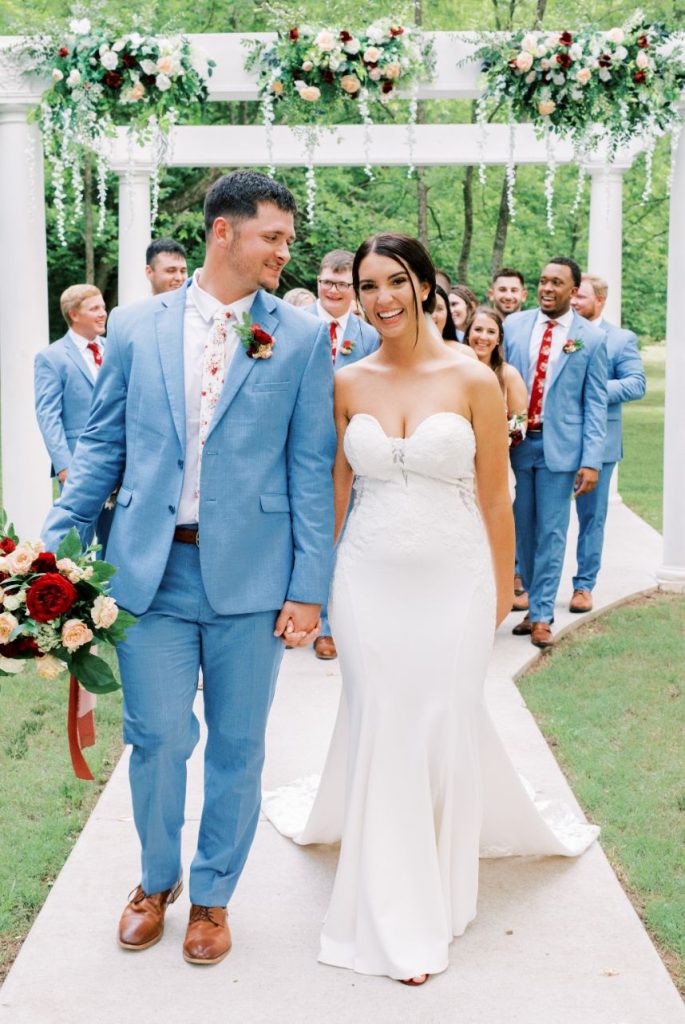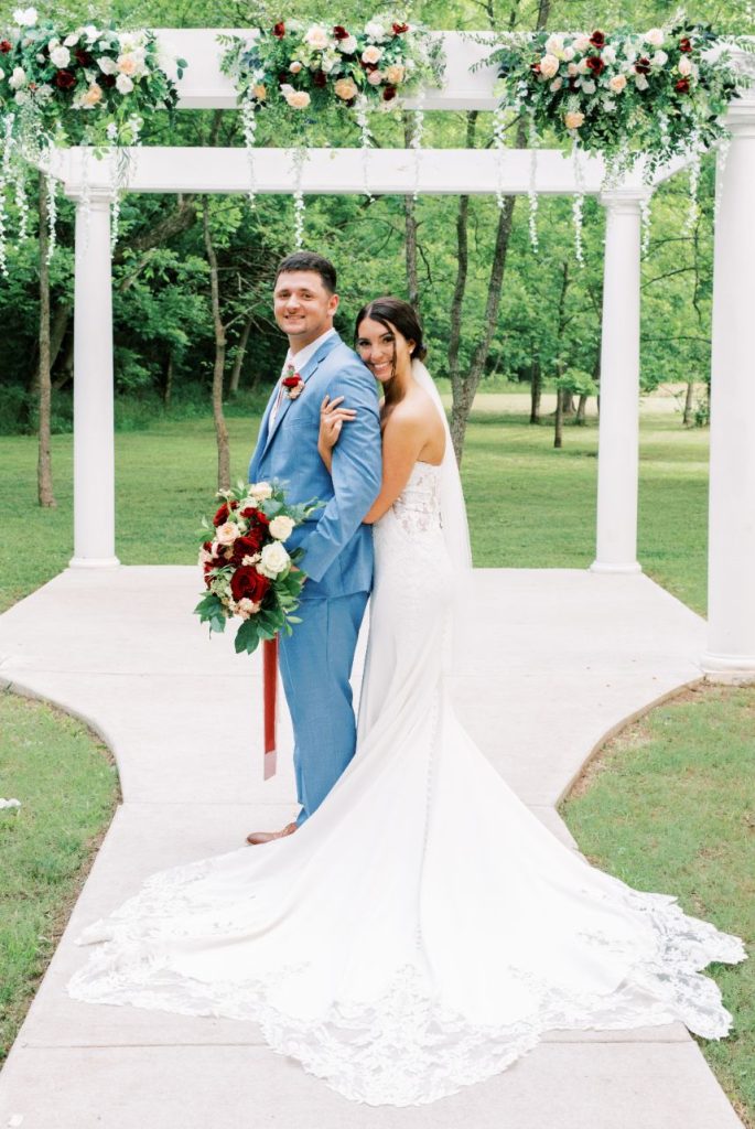 We can’t get enough of the pops of cherry red in Mackenzie and Lane’s charming and classic wedding. Mackenzie and Lane met back in high school at a haunted house. After that night, the two exchanged numbers and began their love journey. The couple spent the next five years making the long-distance while in college work by making frequent trips between Norman and Shawnee. Finally, after five years together, Lane proposed in the same spot where the couple first met. Mackenzie thought she was going home for a family dinner. However, when Lane took a different turn because of “road construction,” Mackenzie knew something was up. Lane got down on one knee and asked Mackenzie to spend the rest of her life with him. Mackenzie, of course, said “YES,” and out popped all of their friends and family to celebrate the two!