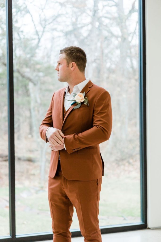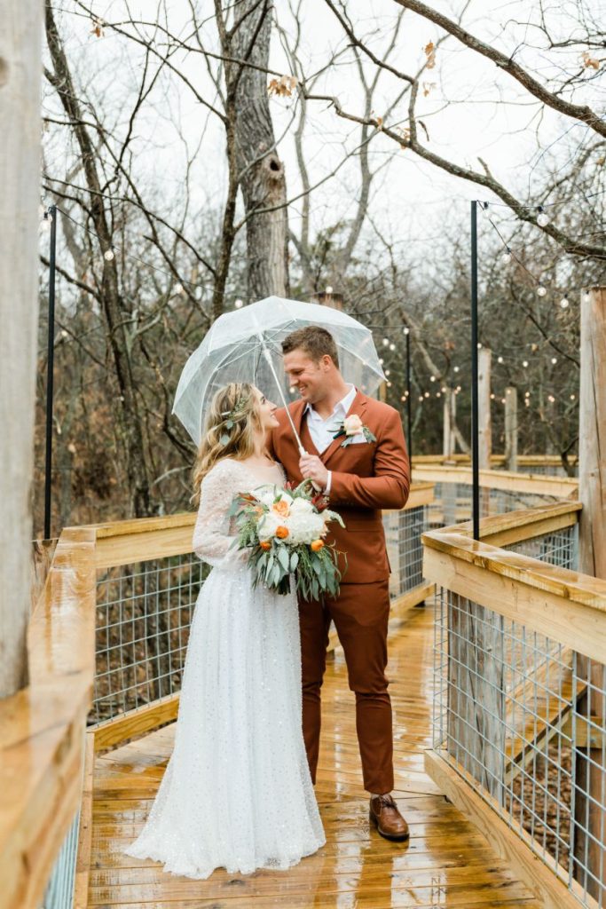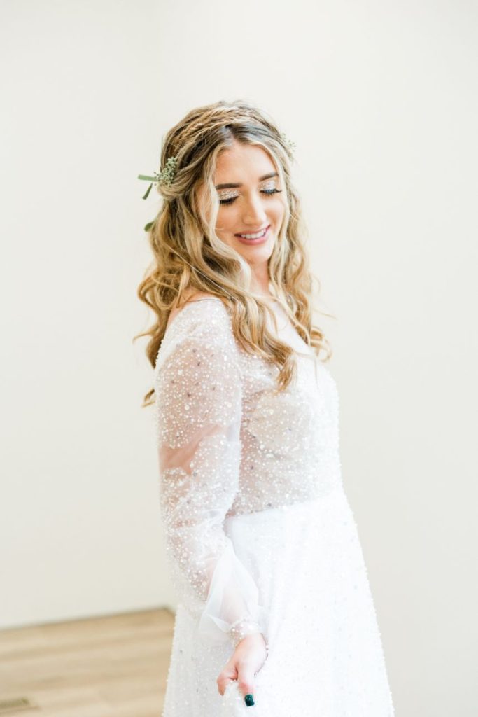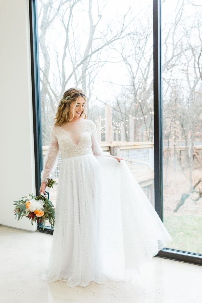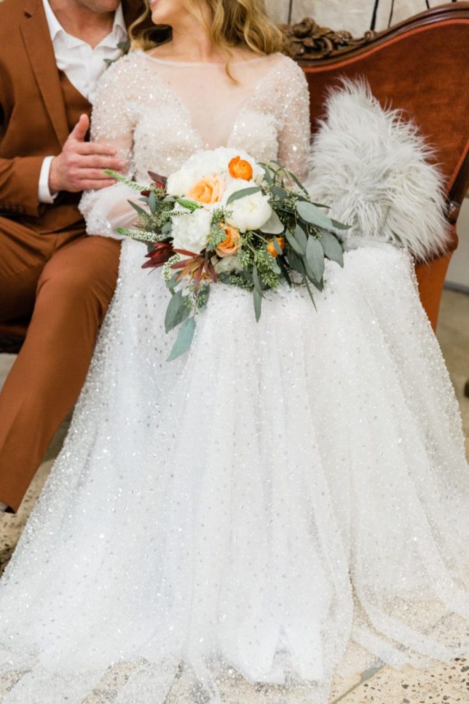 Boho wedding inspiration has yet to be done quite like this and macrame details combined with the magical woodland vibes in this styled shoot absolutely set it apart from the rest. Décor like antique brass and amber glass add rich character to a wedding scene all tied together with macrame details from Boho by Jenn adding a handmade, down-to-earth vibe at the altar and continued throughout, around napkins and near these creative cakes utilizing the same tasteful terracotta tones. A tablescape surrounded with wicker peacock chairs and wooden rentals from Borrowed & Bleu Co. set the trendy boho tone in photos along with a vintage velvet lounge setup that sparks warm and cozy feelings your guests will adore. Our model stuns in a long-sleeve gown from Avari Bridal featuring an illusion neckline as well as a spray of shimmering beaded details practically calling out for the celestial bride. She looks simply radiant with glittering makeup and hair in a braided down style, accented by her groom clad in cognac brown for a more nontraditional wedding tux from The Wardrobe Modern Menswear. There are almost too many parts we could obsess over so scroll on to find your own favorite part in the boho wedding inspiration gallery just down below. Cheers!