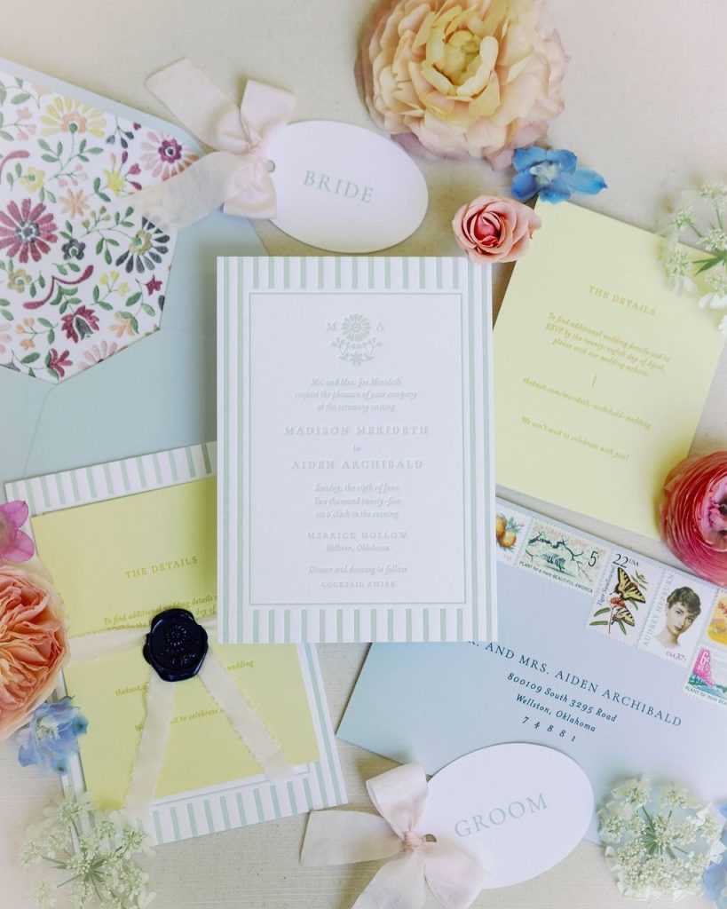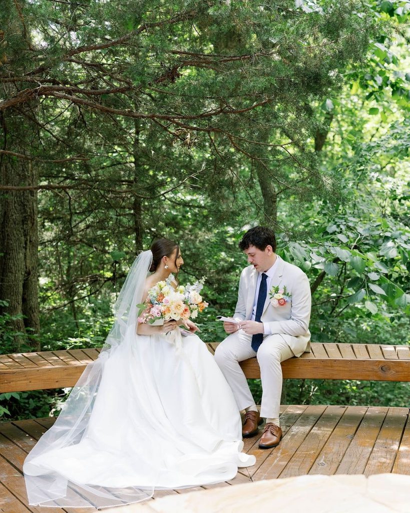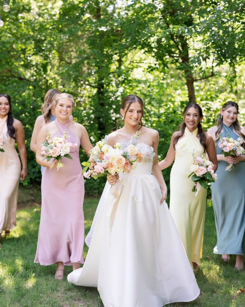 Madison & Aidan’s spring wedding was straight out of a fairytale! With a dreamy palette of blues, greens, and yellows, the details truly came to life—from the lush florals by Robyn’s Flower Garden to the charming linens from BBJ La Tavola. Harper Mae Events tied it all together with a vintage, whimsical vision that made the day unforgettable. So many sweet moments to love!