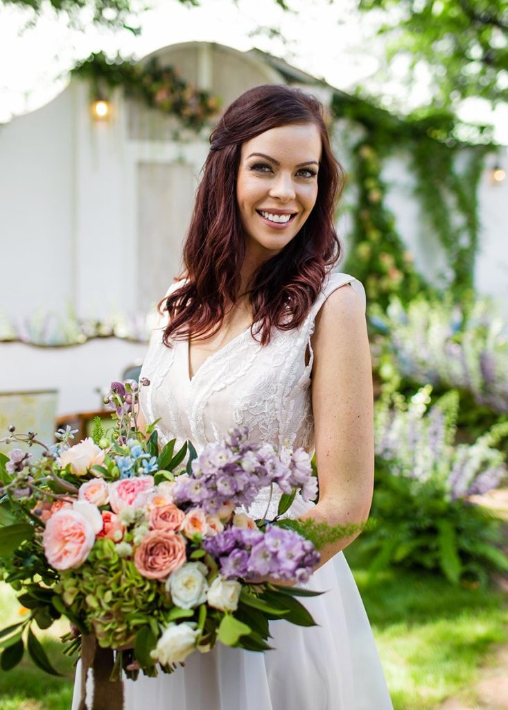 Atherial Makeup and Skin Studio is a mother/daughter team – both licensed estheticians – out of Tulsa who have a passion for makeup and skincare. We love their look from this garden shoot, the natural lip and slight smokey eye are perfect tie in to the dramatic florals of this scene!
