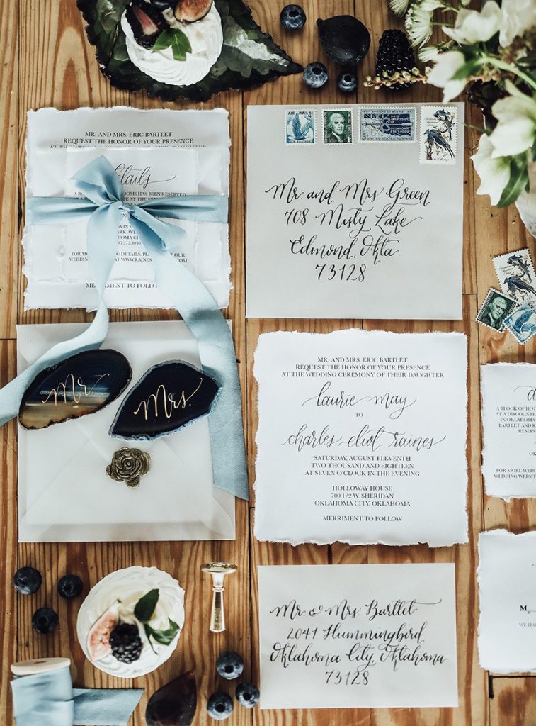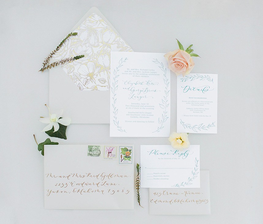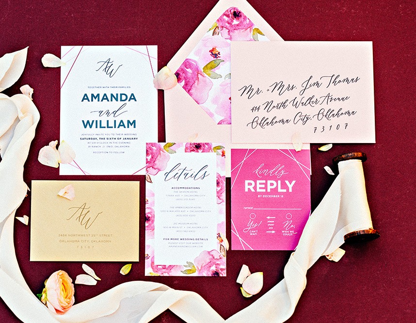 We can’t get enough when it comes to pretty paper! As you flip through the new Spring/Summer 2018 issue you’ll find dozens of inspiring Oklahoma wedding invitations from our top stationery designers. These talented artists each bring a unique spin to their wedding invitations. Here is just a sampling of their incredible work we had the honor featuring in the current issue!