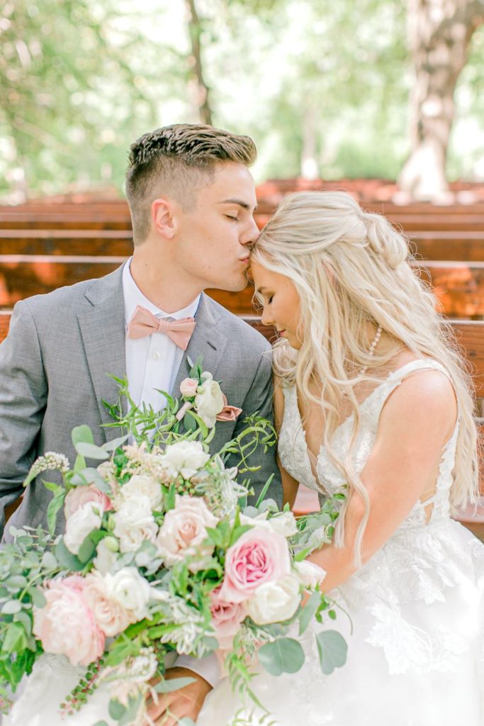 Taylor and Jacob’s wedding had the most magical soft pink and floral accents! This beautiful couple’s love story is one for the books that began in an Algebra 1 class – how adorable?! Southwind Hills was the perfect place for Taylor and Jacob to tie the knot with all of their closest friends and family! This wedding’s pink florals, touches of greenery and gold accents give us all the soft and delicate wedding vibes, and just look at that show-stopping Amy Cakes five-tiered cake that features a glass terrarium! One of our favorite details are the adorable succulents that were given as wedding favors to the guests, such a unique gift idea that perfectly ties into their theme! Taylor looked like an absolute princess in her Prescott Bridal gown that also incorporates subtle floral detailing, and no look is complete without simple yet elegant hair and makeup from Serendipity Salon! Photographer/videographer Emily Nicole Photo captured all the magic from the special day and the blossoming love between this couple! Cheers to Taylor and Jacob!