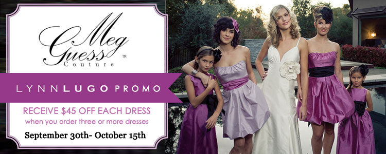 Check out this sweet deal from Meg Guess Couture! September 30 – October 15 receive $45 off each Lynn Lugo dress when you order three or more dresses! Happy shopping!