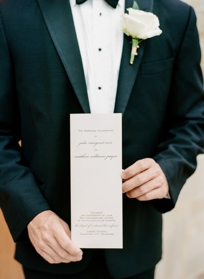 On June 18, 2016, Meg and Matt were married at St. Edward’s Chapel of Casady School. Meg wore a beautiful gown with a beaded and embroidered corset bodice with a modified A-line. The dress had three components, allowing her to have three different looks throughout the night. One of the couple’s most memorable moments from the wedding was the first look. They loved getting to see each other before the wedding and enjoying that special moment with one another.