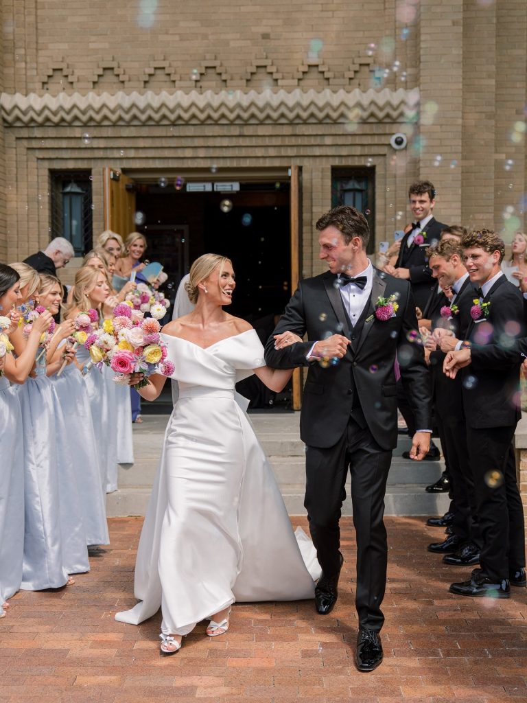 “We wanted our wedding to be colorful and timeless! Some of our highlights from the day included our church ceremony, the first looks with bridesmaids and family, our first look at the reception, our wedding party entrance and reception entrance, our first dance, and the liveliness of the dance floor all night. We couldn’t have been more excited about how the whole day planned out and it truly was our best day ever!” – Megan & Charles