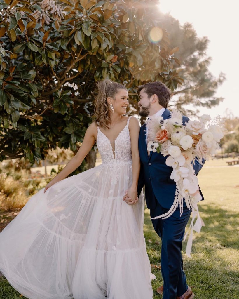 “Abbie and Emilio were the maid of honor and best man at Abbie’s sister and Emilio’s best friends wedding. Ever since, they have been inseparable. It became a full circle moment when that couple then became Abbie and Emilio’s best man and matron of honor. Abbie and Emilio are a fun and lively couple, and their wedding was definitely that.” – Borrowed Charm