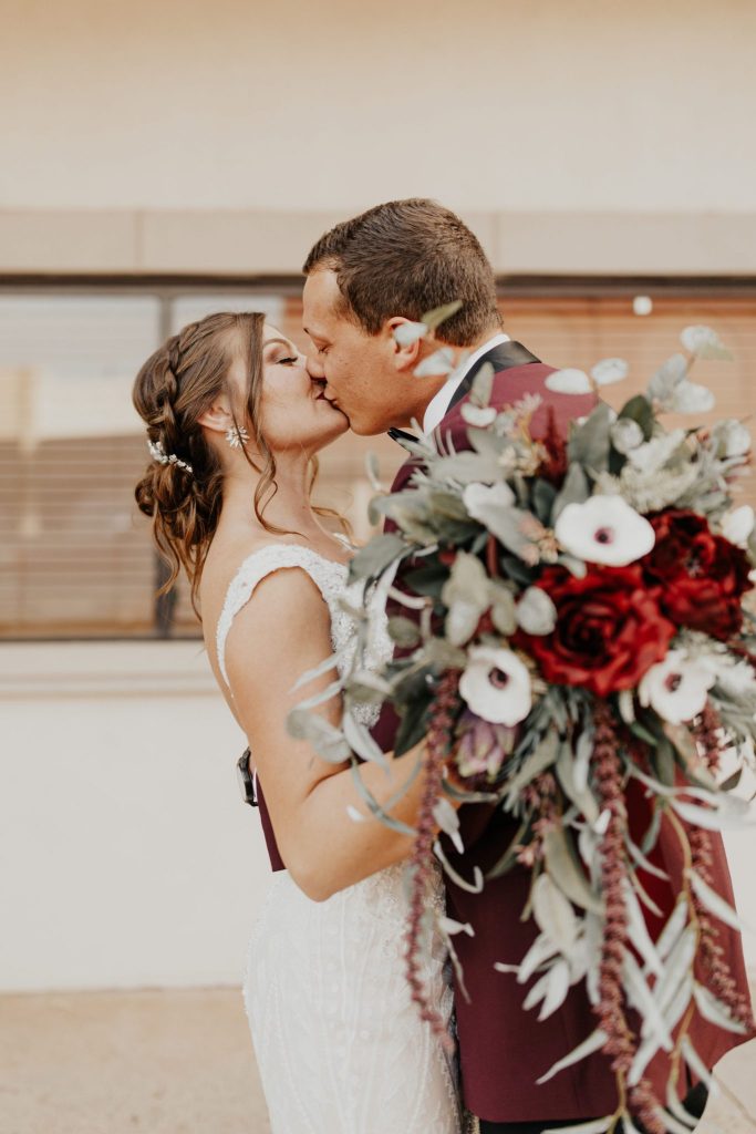 While most of us are excited for fall, Charlee and Alec Barker’s modern Christmas wedding is sure to have you wishing for the cold weather! This love story started with Charlee following her now husband on Instagram because she thought he was cute. After a couple of years, Alec reached out to Charlee, and the rest was history. Every year on their first date this sweet couple celebrates their “first dateiversary,” and on the fourth year, Alec proposed at the ice skating rink where it all began. Don’t mind us, we’re just wiping our tears after that cute proposal story!
