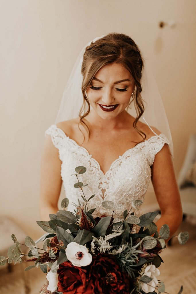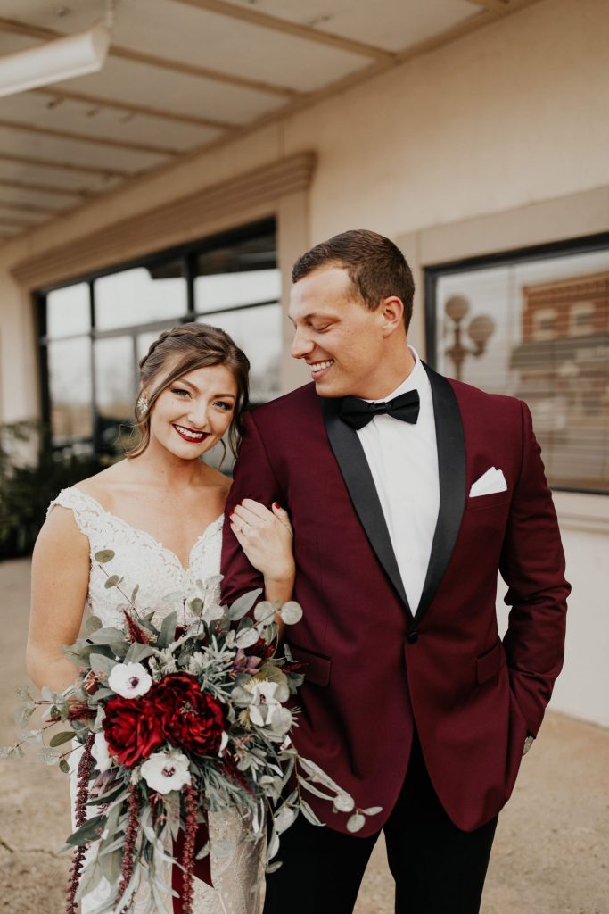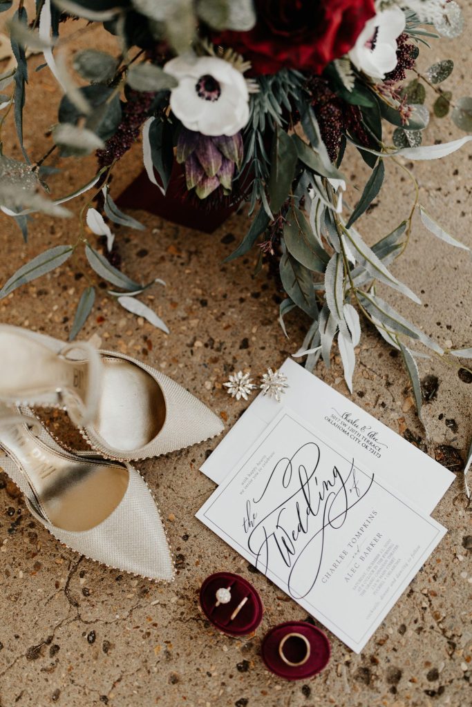 After their proposal, this sweet couple decided to continue their tradition and marry in the winter at The Grand Canadian Theater, and we are absolutely smitten. With the look of an old movie theater with a Hollywood glam feel, this venue fit the modern Christmas theme perfectly! After looking at the beautiful decor, this sweet bride got ready with her family and friends by having dance parties and makeovers. Her dress from Bella Rose Edmond was carefully slipped into and complemented the special ring, that was her late grandmother’s, perfectly! And we can’t not talk about how dapper the groom looked in his suit from The Wardrobe Modern Menswear! And as perfect as the bride and groom are, we could not be more stunned by these pictures taken by Susan Alyse Photography. From the smallest of details to their pictures of the newlywed couple, this photographer didn’t miss a beat! Keep scrolling to see why we’re wishing winter would come sooner!