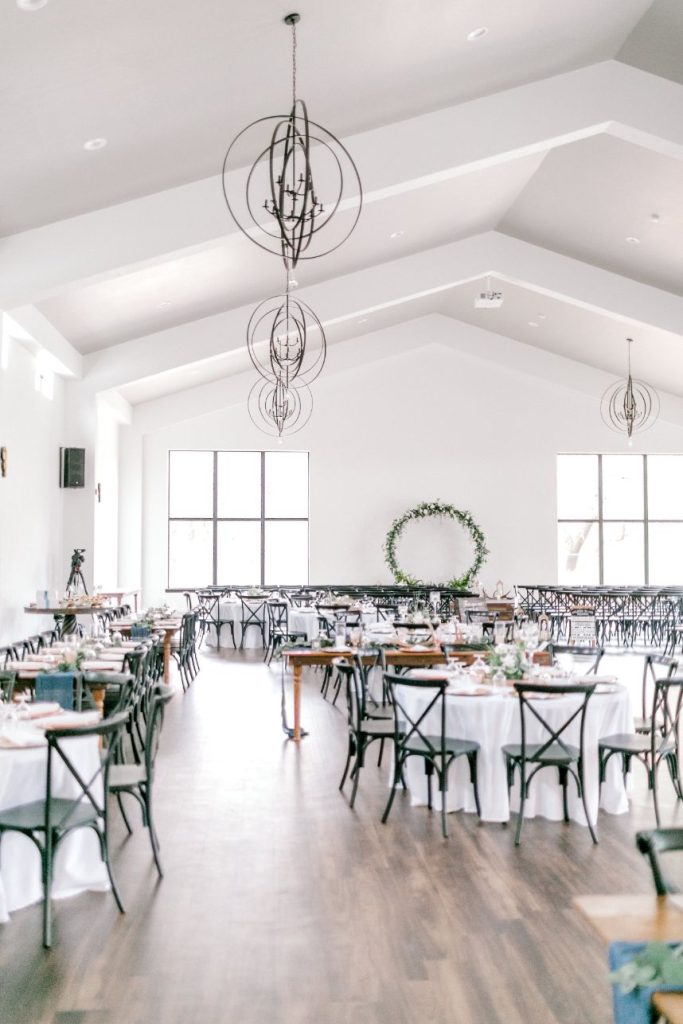 Katrina and Baylor’s romantic rustic modern farmhouse wedding at Sorelle- The Meadow on Deer Creek was one to remember. The combination of steel blue, white and hints of light pink looked incredible with the subtle undertones of greenery. From the big moments and down to every last detail, Emily Nicole Photo captured every aspect of the newlyweds’ special day. Katrina looked absolutely stunning from head-to-toe! Her jaw-dropping ring from Kelley Jewelers and accessories from Kendra Scott added an extra sparkle to the whole look! Read on to hear from the bride about her favorite wedding vendor and why. Cheers to the Watkins!
